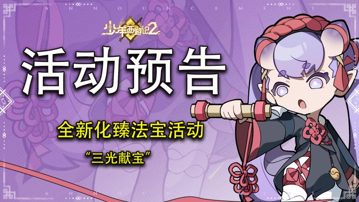 6月伊始,《少年西游记2》全新化臻法宝活动“三光献宝”即将限时上线!极品化臻法宝“紫金红葫芦”开放获取!活动开启时间:5月28日 - 6月3日*本文内所有配图,均来自于内部测试服,属临时素材。具体内容请以实际上线的版本为准。活动玩法1:六丁神火炉1.活动期间,玩家每日可在六丁神火炉进行炼制。2.炼制开始前,会展示出本日炼制所需要的材料,在材料栏中选择对应材料,全部选择正确后开始炼制。3