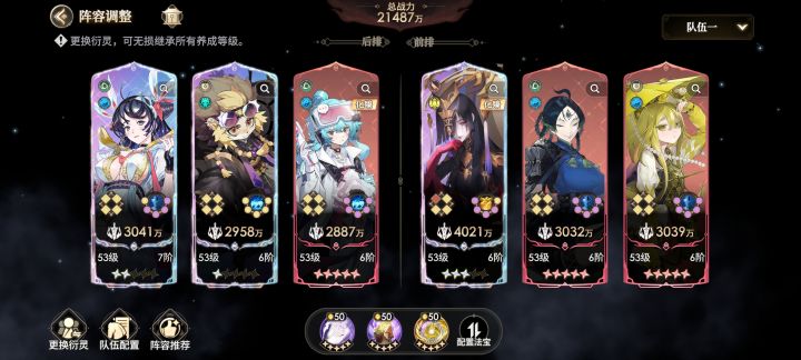悟空国家队角色:孙悟空、猪八戒、妙音鸟、太平公主、伏虎罗汉、杜甫分析:角色本身数值很强,太平公主可以击杀敌人后再次行动,只要攻击够高可以实现套娃攻击,孙悟空全体物理攻击,还能根据目标生命值增伤,整体评价就是各个角色本身就很强,爽就完了专攻后排队角色:李白、杜甫、太平公主、孙悟空、妙音鸟、电母分析:李白作为主c可以直接攻击敌方后排,伤害也高妙音鸟的连携可以为自身增加暴击和最终伤害,还能给队