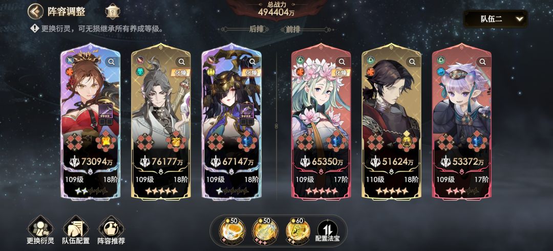 首先这个阵容除了六耳连携都不开,任何角色放大招都有概率让六耳敲棍子 金童和百花可以给后排双C提供总计30%的增伤,提升后排输出,同时双加血配合法宝玉净瓶和生死簿也能保证一定生存能力,金童还能给残血加15%的减伤 太平的标记和杜甫都有减伤效果,进一步提升输出,百花加灵能能保证地藏每回合都是双大招,地藏,杜甫和六耳都是全体攻击,配合杜甫专武可以群体压血线,方便残局太平补刀 最后也是最有意思的就是六耳和