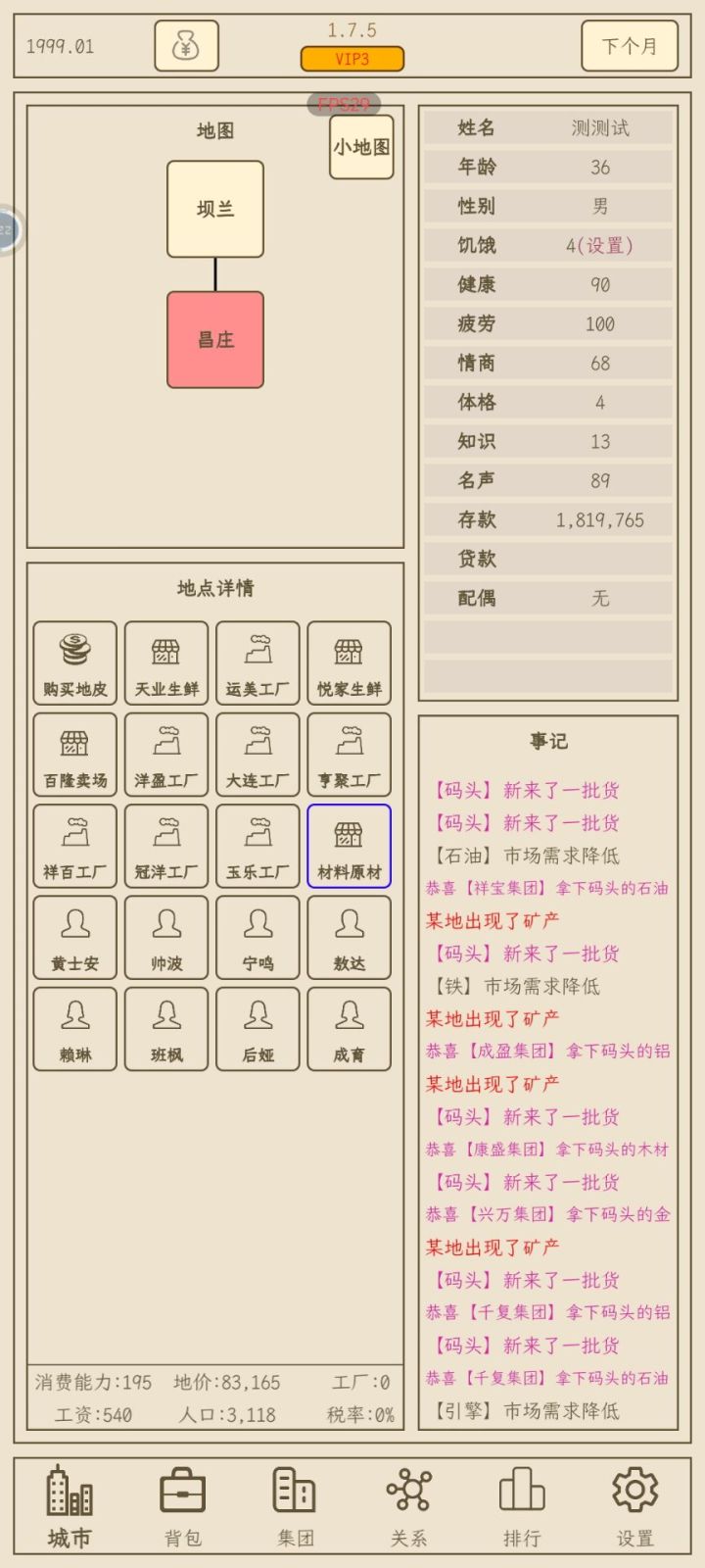 小小集团之破产人生1.6.1版本介绍