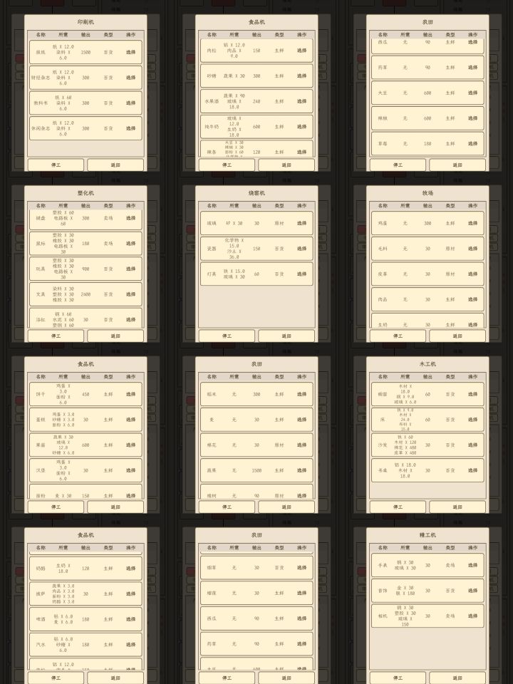 工厂机器对应材料一览