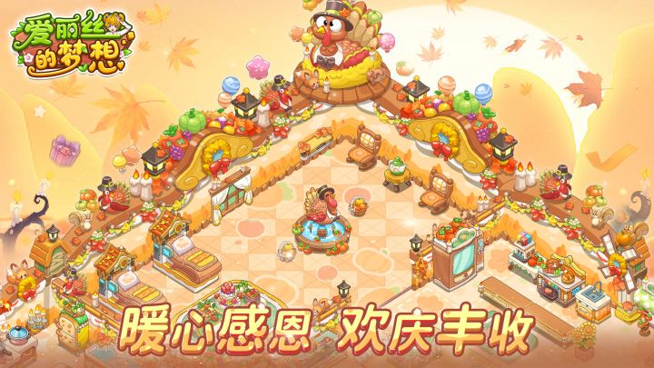 丰收是秋天的主旋律,金黄是深秋的代表色。每当感恩节来临的时候,人们已经将空荡荡的粮仓填满。全新感恩节主题季来袭!金黄的麦垛与落叶构筑了主题装扮“金色满园”,肥美流油的火鸡则是这个主题装扮最特别的标识,让整座餐厅都充斥烤鸡香喷喷的味道~快来和爱丽丝一起感受充满香喷喷气息的火鸡乐园吧!#游戏资讯