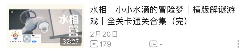 【水相:小小水滴的冒险梦|横版解谜游戏|全关卡通关合集(完)-哔哩哔哩】 https://b23.tv/QkqklNe