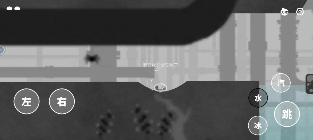 水相一款以水的三种形态(液态,固态,气态)横板闯关类游戏。游戏摇杆:摇杆以及按键位置设置有问题,有时候移动摇杆再往右移动,跳跃和变态按钮再往左移动会更好。移动摇杆有时候感觉接触不良,断触情况出现。(因为游戏有显示按A,D键所以感觉可能是端游移植类游戏,但不知道为什么没有搜到相关信息) 游戏中的三形态:液态水移动跳跃落地会有一段距离的滑动,特别是再过红色的河时,很容易血压上升。固态水,无法跳跃,但是