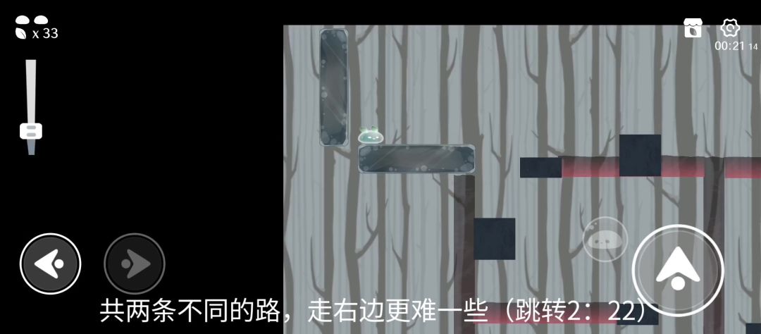 总算是过了,之前用Tapplay打水相的延迟实在太大了…发现一张不耗叶子的神图,整张图也非常有意思也非常好看,就是不像四星图…(绝对有五星,还可能超五星)问题主要就两个,都不大,不影响正常通关一可以把地面改粗一点,1:22这总会因为看不清地板跳不到左边平台二可以优化下难度分配,前半明显难于后半(主要难在比较长和1:35那里)可以缩短一些长度