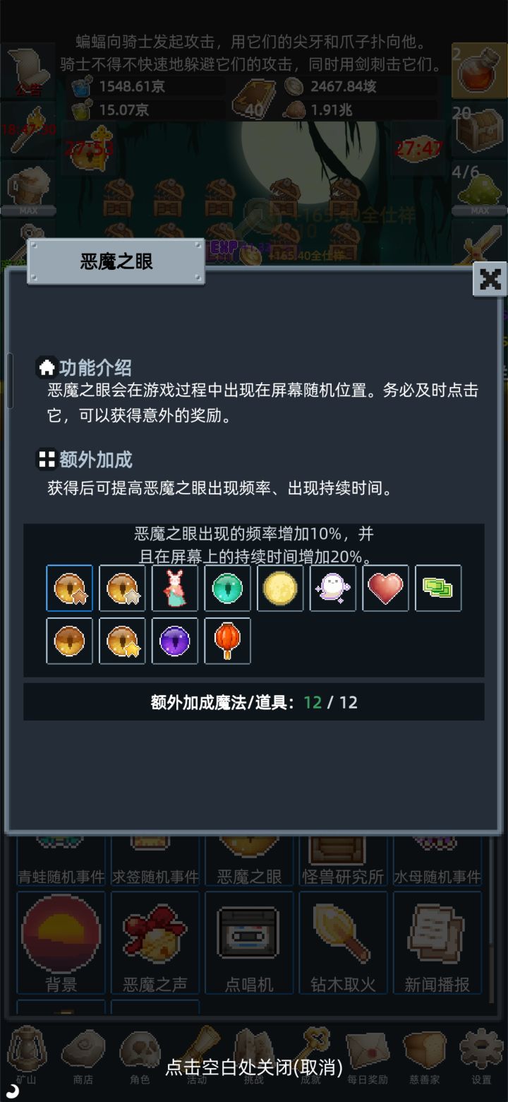 : 感谢长评,感谢您对游戏的喜爱与支持,并为我们留下那么多宝贵的游戏体验和建议,您的鼓励是我们研发的最大动力!您的意见小助理已都收下,后续会继续优化游戏。屏幕上的宝箱怪是活动里怪物研究院产出的宝箱怪,可以帮助你积攒金币,缺钱的时候可以点掉收割一波金币,还能完成成就和中元节活动。