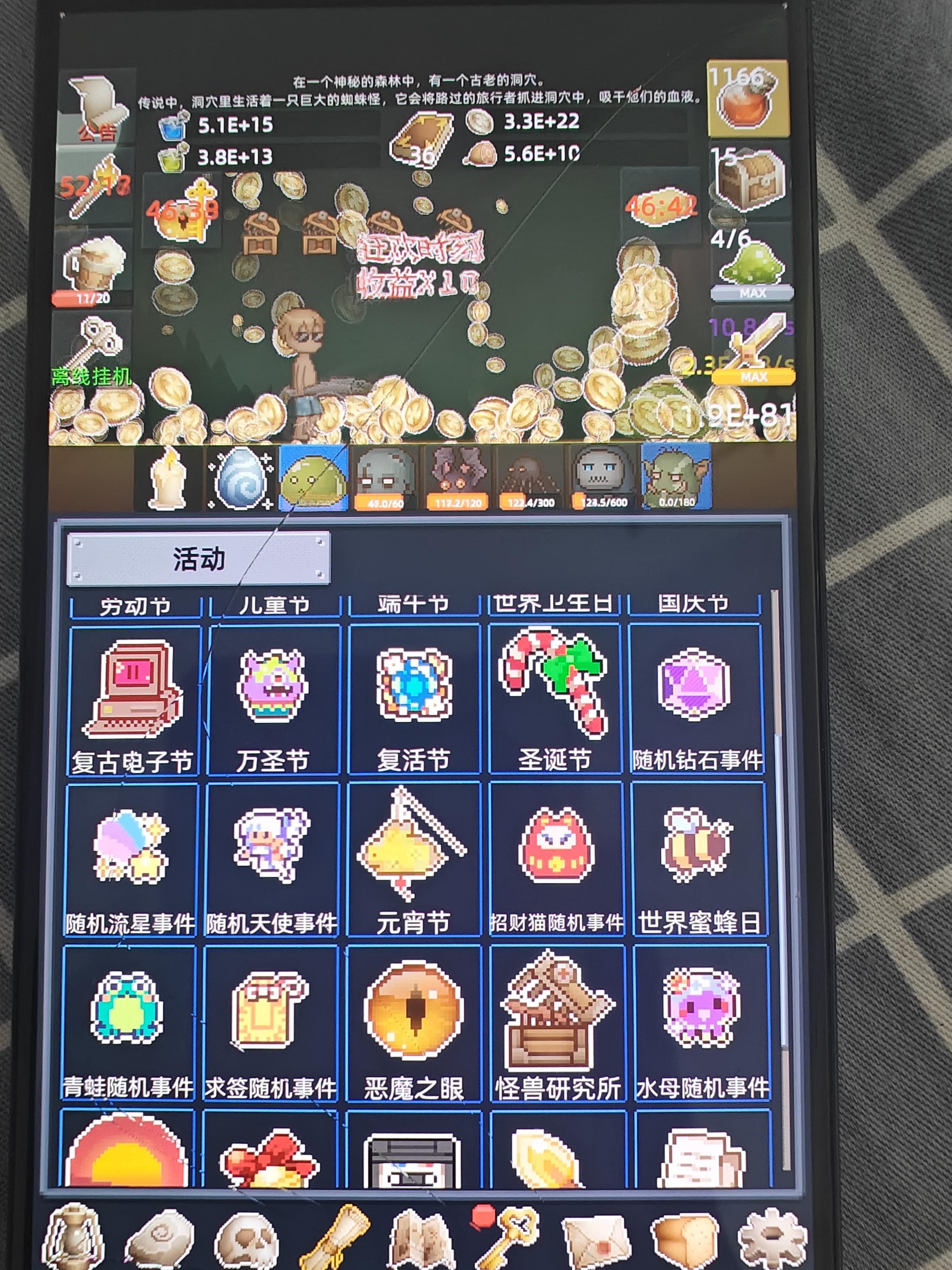 玩的时候没找到详细的攻略,玩了几天,总结了一点经验,希望对你有用最下面极简总结思路!(可以直接跳转最下面!刚开局一头雾水,直接让你攒1兆,就用十倍狂欢+恶魔之眼+宝箱怪快速攒等到第一次转生之后,注意最左边那个蜡烛,前期攒着太慢了,可以直接开那个新手之光,不过稍微玩一会就意义不大了(魔法水可以看新手攻略或者进群,都有好多兑换码可以领攒了一些币后,就慢慢开那些最便宜的,优先上面的蔬菜水果之类的