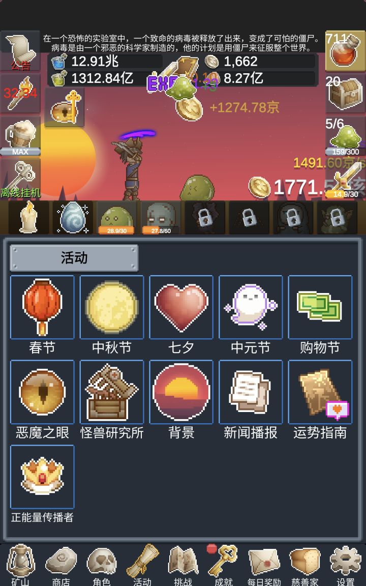 玩的时候没找到详细的攻略,玩了几天,总结了一点经验,希望对你有用最下面极简总结思路!(可以直接跳转最下面!刚开局一头雾水,直接让你攒1兆,就用十倍狂欢+恶魔之眼+宝箱怪快速攒等到第一次转生之后,注意最左边那个蜡烛,前期攒着太慢了,可以直接开那个新手之光,不过稍微玩一会就意义不大了(魔法水可以看新手攻略或者进群,都有好多兑换码可以领攒了一些币后,就慢慢开那些最便宜的,优先上面的蔬菜水果之类的