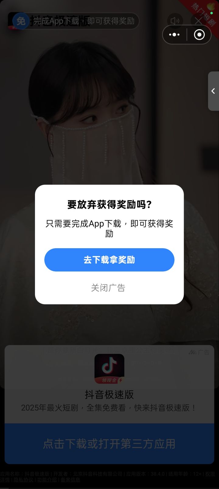 一直是这个界面,看了好几次广告了,都过不去是为什么呀?
