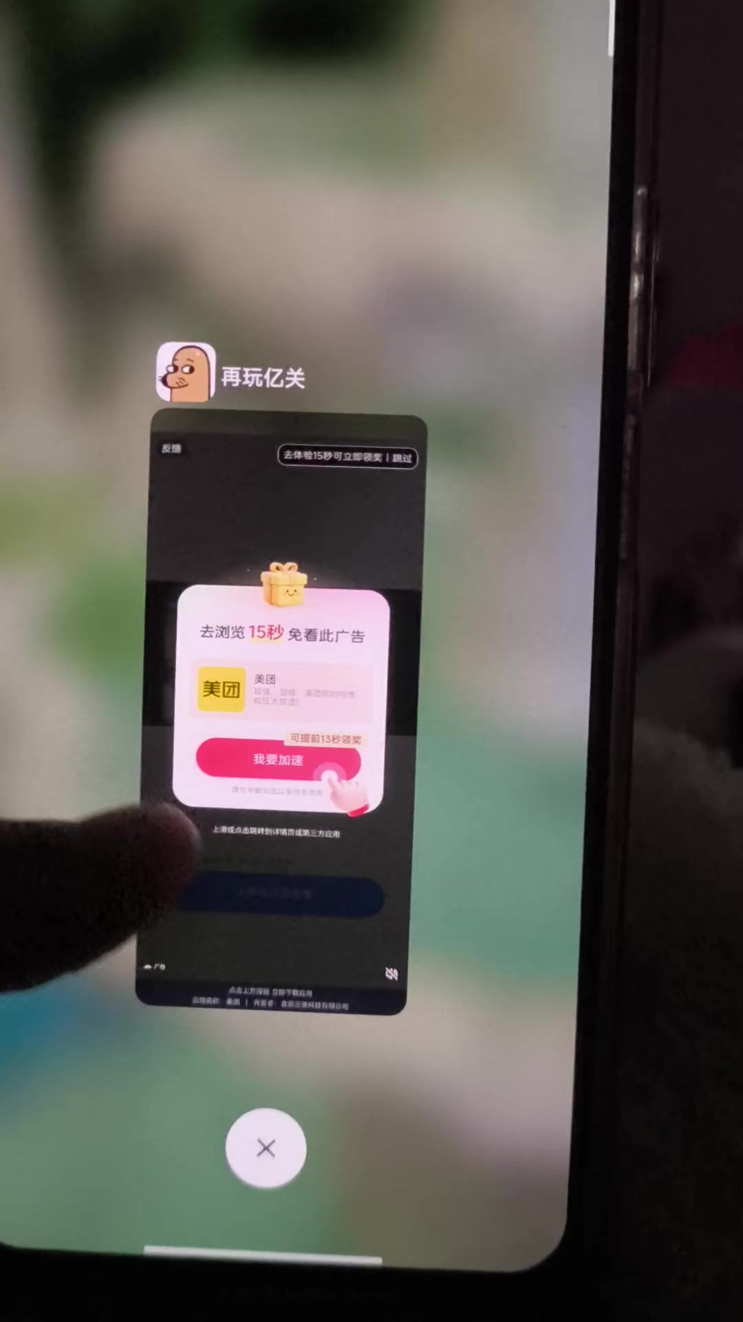 直接弄死机了,看广告跳软件,我切换回来,就直接没反应了,手动重启也不行,后面手机自己重启了。