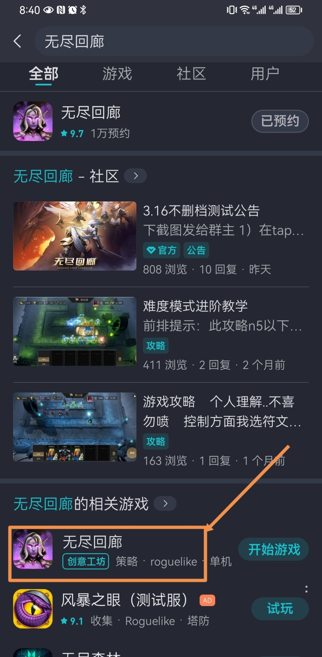 感谢玩家一路的支持!游戏计划将于 3月16日 晚间进行不删档测试! 开服当天会有1888的魔石礼包! 为感谢参与测试的老玩家, 会在开服时给老玩家准备额外的 魔石 及信物精粹 礼包奖励。 (参与1测的玩家会在此基础上获得更多奖励!) 参与方法如下: 将以下截图发给群主 1)在taptap无尽回廊的页面进行一次打分评论 2)taptap无尽回廊论坛里随便发表一条帖子 3)测试期间自己ID账号 4)正