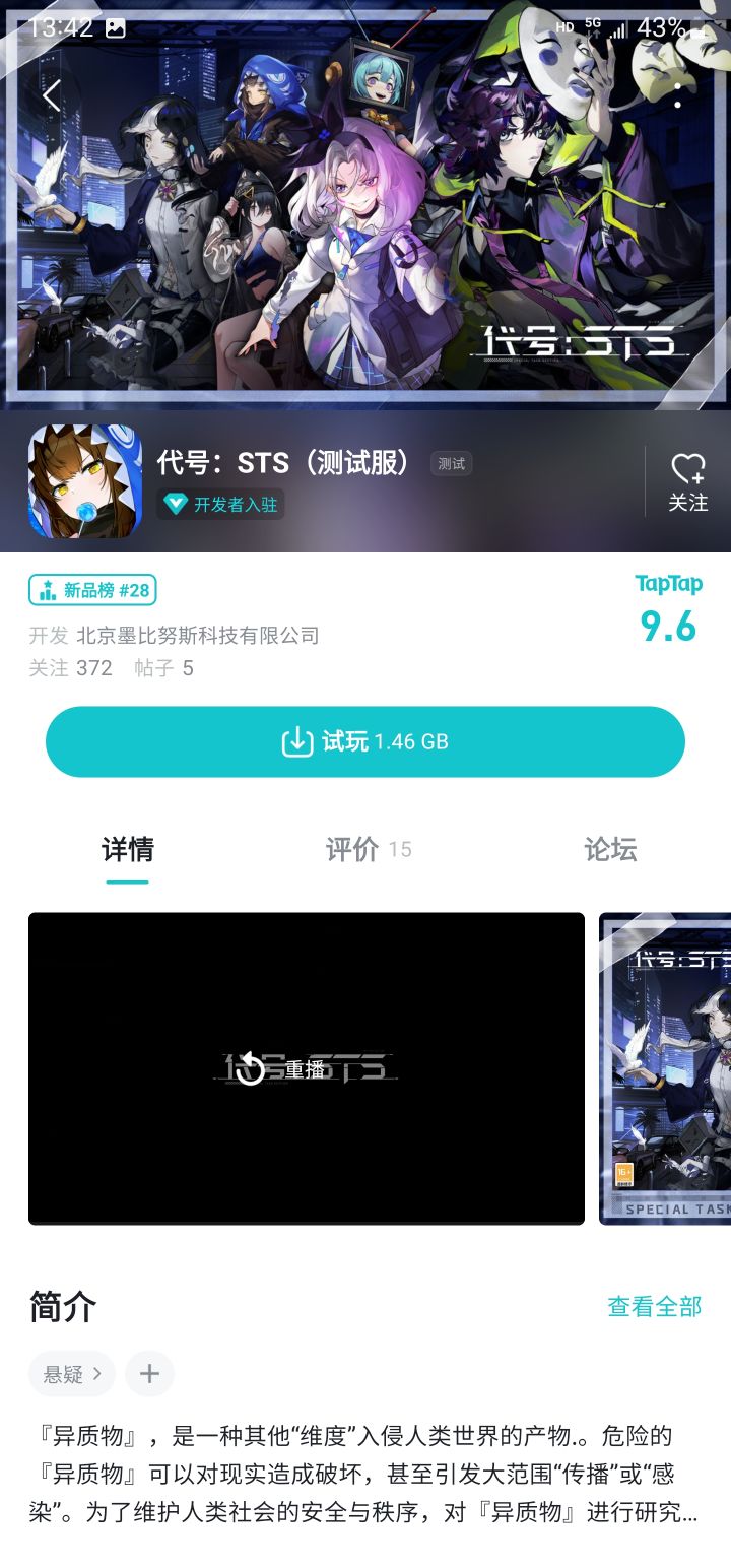 大家好!期待许久的「溯因:Y测试」即将在明天(12月8日)上午10点正式开测了!今日,预下载已正式开放,之前通过填写招募问卷获得了测试资格的小伙伴们,现在可以通过页面中的下载按钮进行预下载。12月8日上午十点,期待和大家在《代号:STS》中一同探寻真相!【测试FAQ】Q:本次测试的具体开放时间是?A:本次「溯因:Y测试」时间为12月8日10点—12月16日12点,在此期间获得测试资格的
