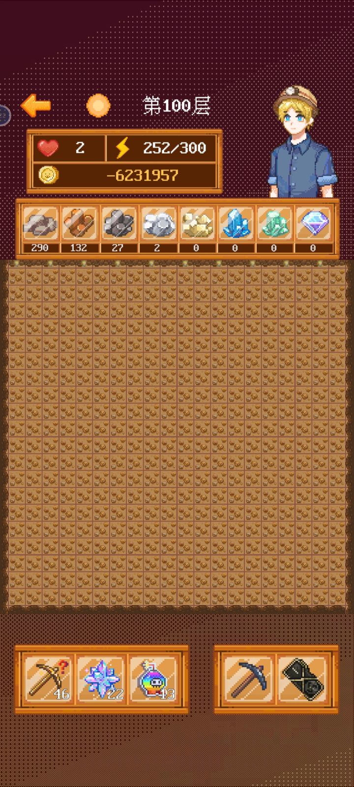加些能让挖矿过程更爽的商店道具,比如保证第一次点击必定不会点到雷,点到周围八格都没有雷的空格可以成片点开,跳过挖掘动画,增加矿石售价,保险盒(锁定五个最高等级的矿石不被偷),等等