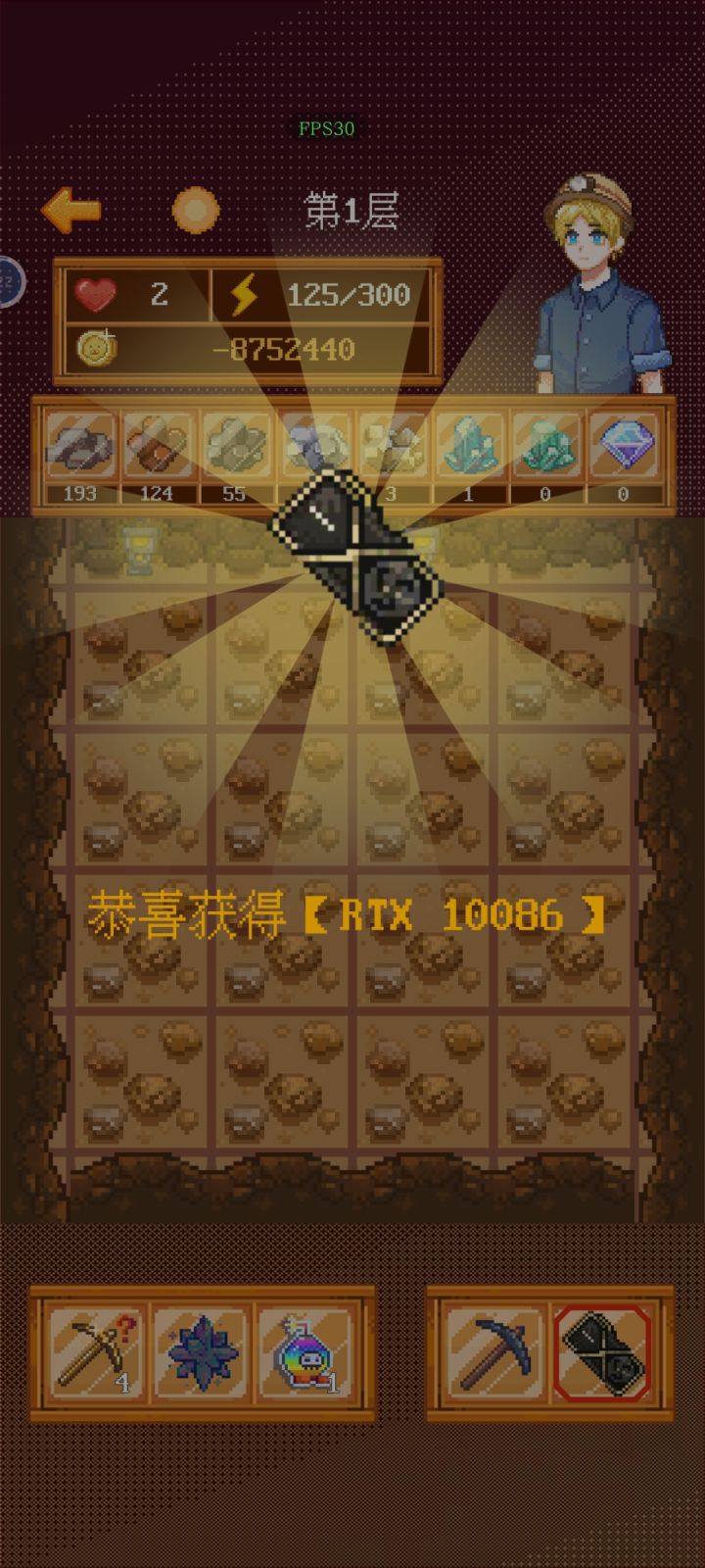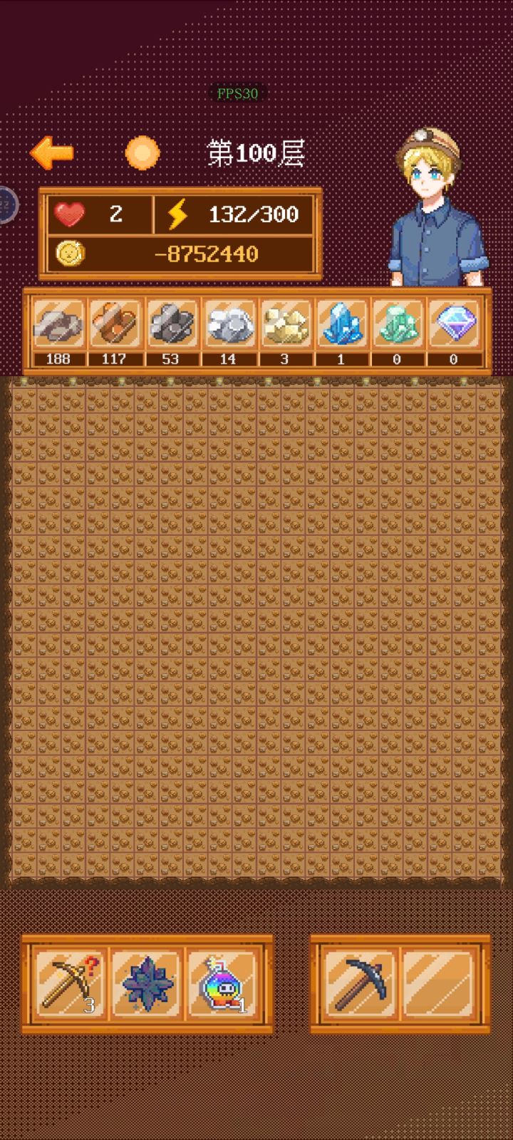 主要玩法扫雷不多说,右下角镐子图标是挖矿,炸弹图标是标雷,点击切换;左下角道具点击会有说明有数字的格子才有矿石,数字越高矿石越好,每层把矿都拿了再往下空白格概率刷新:体力药水(恢复体力),楼梯(前往下一层) 臭鞋(熏晕扣医药费),老鼠(明抢矿石) 发现钱——上交(概率得高级矿,但是会被老鼠偷)不上交(被发现罚两倍)因为有体力限制,尽量不要在空白格浪费,但是往下一层的楼梯必定刷在空白格,非