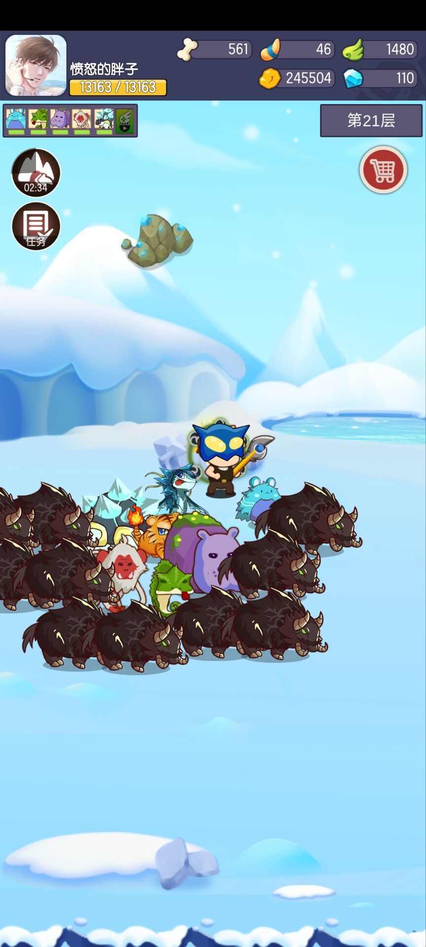 页面讲解篇商店:买卖宠物的地方,花金币的重要场所。打死过一次的怪可以在商店花金币购买。(团灭或者小野人死后,宠物是清零的,不想重新慢慢收集,可以直接通过商店购买)另外这里可以通过钻石开拓宠物格子(开满30个,钻石性价比最最最高的地方,前期务必多开格子) 加成:看广告获得野人buff加成(攻速移速增加30%)10分钟 图鉴:emmm~除了看并没啥用 当铺:卖骨头材料的地方 仓库:仓库居然是换英雄角色