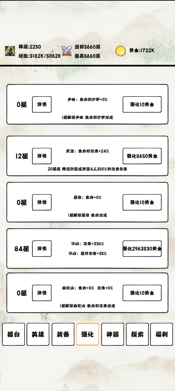 天赋:4魔+2掌!技能:3火+1连击(3火:无视十斧头十吸血)只能一关关Boss+小兵打上去,因为要叠属性,所以要打很久,如果有耐性这配置能打通9999999关,问题是真有人有这耐性?