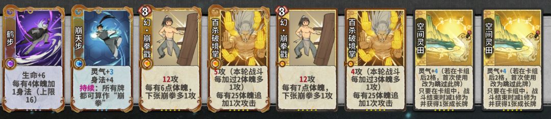 经过我的科研,研究出了一套李淼二动杀的套路,算是独门秘籍。一直不写攻略的原因是怕一局全是锻玄,导致我自己被打爆,不过思考良久,还是决定发出来。现在锻玄也有自己的二动杀了。公式如下: 简单来说就是在游戏后期,利用高体魄的幻崩戳给百杀加攻,一击打出上百伤害。满级幻戳百杀在102体时可以打出12+(5+17+1)x5=127点伤害,如果用在决赛,对手很难反制。为什么角色要选择李淼呢,首先是李淼的吃牌加体