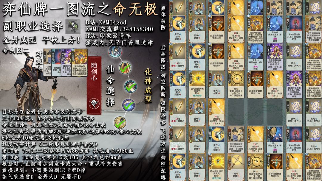 #弈仙牌 #弈仙牌攻略 #弈仙牌2周年 1.前言 大家好,我是万分吾行之系列攻略作者赵郭侠,由于牢吾连续2赛季游戏体验极差,为了让牢吾粉丝们不再坐牢,愉快享受游戏,本人专门闭关研究了牢吾的上位替代,又以交换生身份加入陆剑心群虚心请教,向痛失澄心、没有名字、赵青等诸位陆剑心大佬学习,特此整理出“简化版”命无极攻略,作为牢吾上位替代的快速入门手册,也供想玩简单无脑且有强度流派的萌新们参考。创作不易,