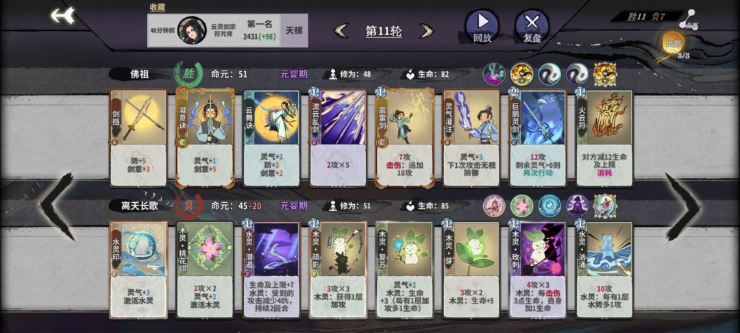 共鸣:炽火炎刃 仙命:筑基期选炽火炎刃,之后剑韵修炼>顿悟>变化之道>修养生息 道韵预感:流云乱剑>飞灵闪影剑和万法归灵剑 副职:符咒师 卡牌选择:炼气和筑基期是炎雪的弱势期,选择剑挡、剑劈、灵气灌注、震雷剑、凝意决、奔雷符、火云符过渡。多存换牌机会,以便在金丹以后刷出需要的牌 金丹期到化神期就是强势期了,在金丹期有多用换牌机会,尽量凑出二级云舞决以乃二级剑挡以及三峰剑,基本就可以秒人了。快元婴如