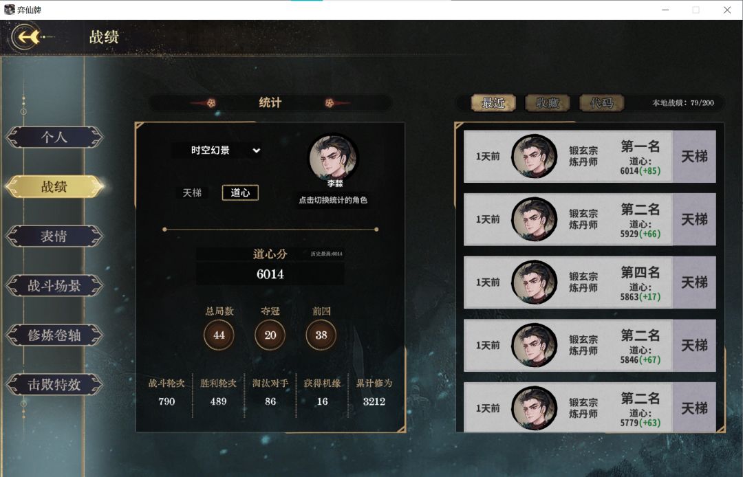 大家好,我是护体丹毁了猫剑,原 玄心命坊拳百玩家,这是过去的战绩图。 虽然比不上同时期的三千鸦杀,往日如熙和小黄鸭,也算是有一定熟练度。 这只是增加我的说服力,今天我給大家带来的是最新最潮的玩法,丹正气屠。一种极高吃分率的玩法。 我目前的分数和场次并不高,从4900开打正气屠,一共打了14把,全部前四,5把吃鸡。这是目前战绩图 补充 MJ1J8H 秘籍 我把我所有摆出来的牌型写上去了。 好