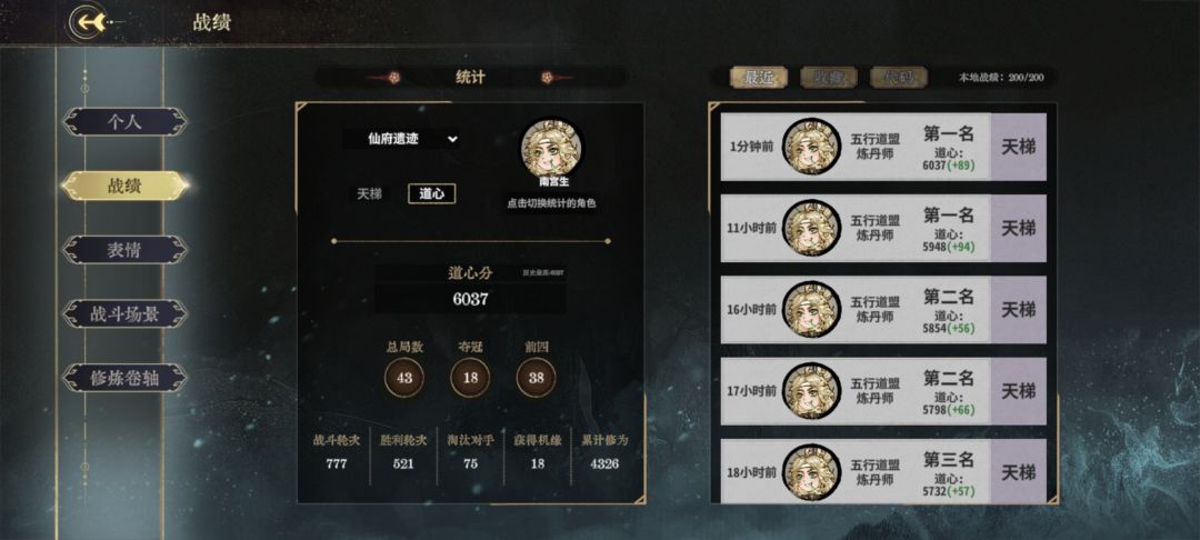 六千分的第三个角色,也是爽爽坐上轮椅了[表情_开心] 。过渡简单而且上限相对高的套路,谢谢某燕氏大师兄高手推荐。对了,我玩的是剑不出鞘共鸣命剑意不是命防。 赛季末了也不写什么攻略了,分享几个让我最后最后六百分上得很轻松的心得。 首先仙命选择: 五千以前我很喜欢金丹和化神全部拿上限仙命或者保命的(锻体,修养等等),因为命剑基本上在决赛圈拿不到先手。但这样很大的一个问题是,作为一个零修角色很多时候是十