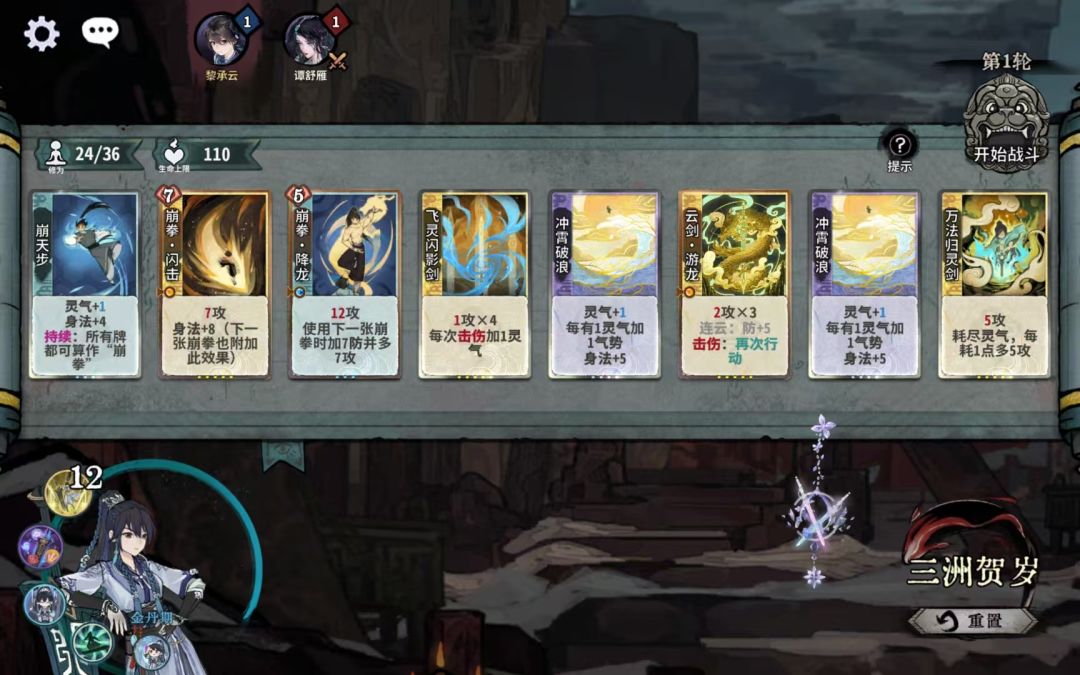 各位道友春节快乐,我是小影,弈仙牌id为梦醒风前丨SHaDow。本次为大家带来春节岁除活动解谜攻略。本次活动中我们将以谭舒雁和黎承云的视角御剑飞行,游览三洲大地。在这28处地标中有五处需要战斗的解谜关卡,分别为锻玄宗、五行山、弈仙府、云灵剑宗和七星阁。五处解谜的核心思路就是宗门卡牌的碰撞,比如崩拳与云剑的碰撞,静气和木灵或万法的碰撞等。下面我们就以实战截图来演示吧。 锻玄宗: 使用崩天步闪击冲霄积