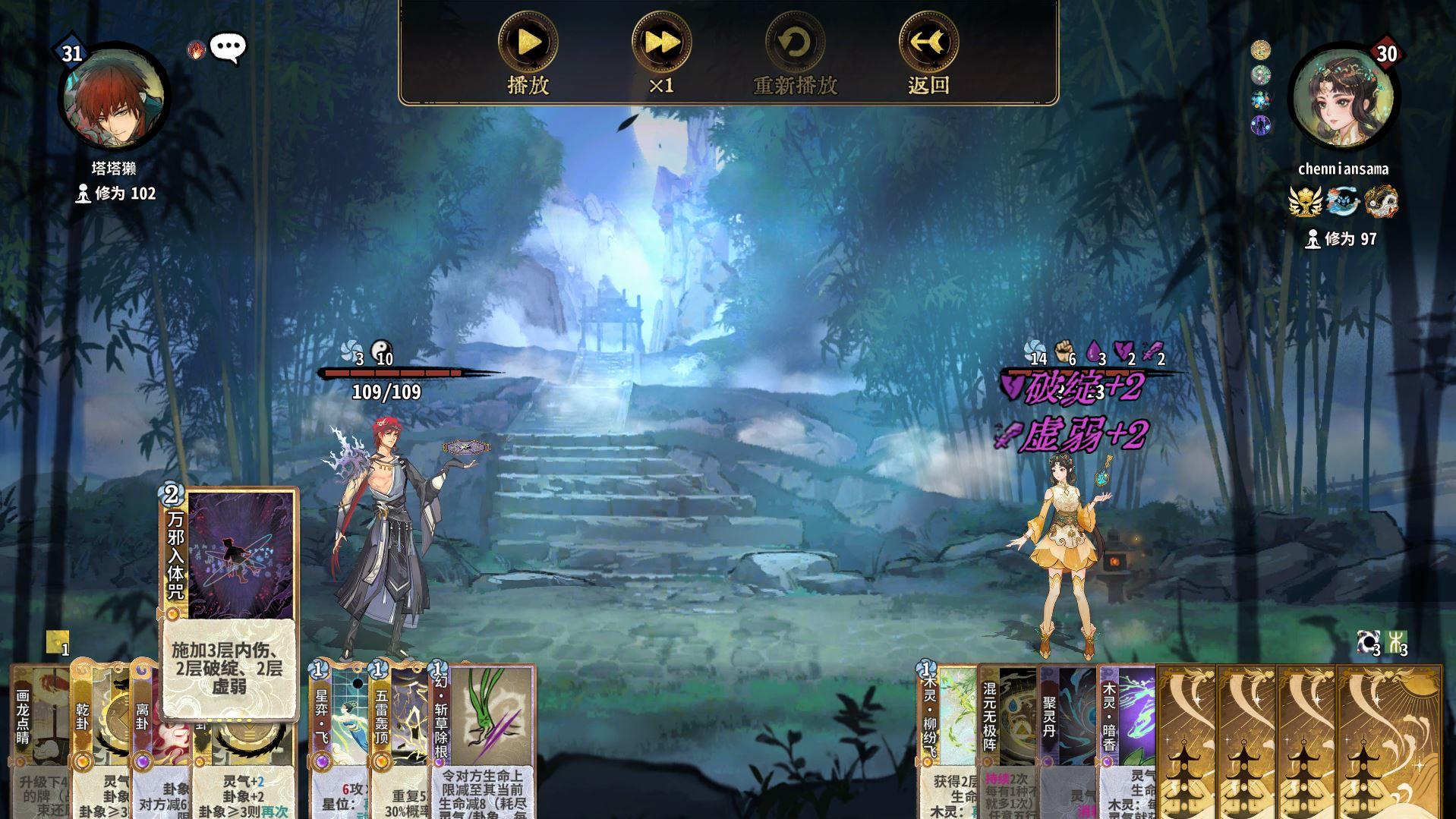 新赛季牢叶的几个共鸣个人看完觉得除了加冥那个没啥用以外其他两个分别对应锻体和修玄两套思路。 个人认为锻玄宗门派牌里还是修玄玩起来最好玩,故而主要思路也是拿蟾月明光的共鸣,这个共鸣的效果可以用冥代替灵气非常好用,为后期的思路带来许多变化,最简单的,护体丹的地位在修玄这一套明显提升了,虽然疯魔依旧可能给内伤,但毕竟概率没那么高,这种情况下,护体丹的对位空间就宽松多了。同时,由于不需要灵气,也就意味着打