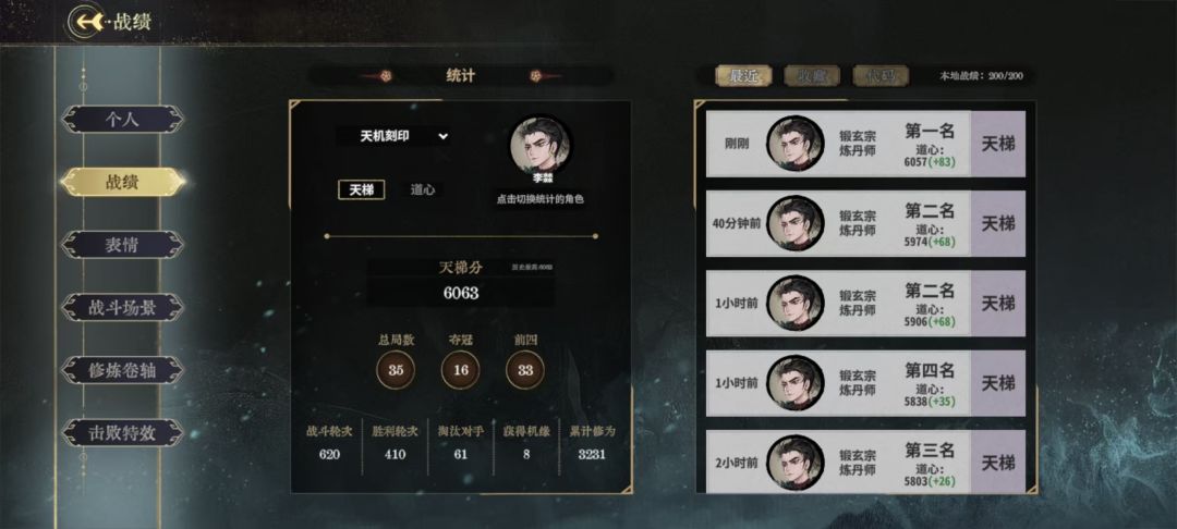六千分的第三个角色,也是爽爽坐上轮椅了[表情_开心] 。过渡简单而且上限相对高的套路,谢谢某燕氏大师兄高手推荐。对了,我玩的是剑不出鞘共鸣命剑意不是命防。 赛季末了也不写什么攻略了,分享几个让我最后最后六百分上得很轻松的心得。 首先仙命选择: 五千以前我很喜欢金丹和化神全部拿上限仙命或者保命的(锻体,修养等等),因为命剑基本上在决赛圈拿不到先手。但这样很大的一个问题是,作为一个零修角色很多时候是十