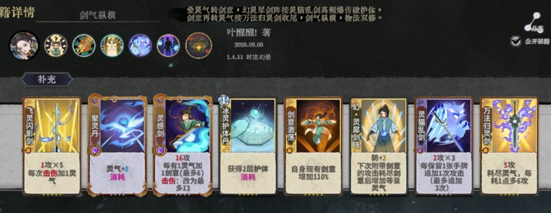 物法双休,我这一套剑气纵横下去你是真的会死,叠灵气转剑意,护体丹保命,幻灵犀剑阵接灵猫乱剑剑意再转灵气,灵猫乱剑多频高伤艰巨破甲和破保命丹的作用,反正万法归零剑绝对可以打死对面收尾,一轮400+伤害。 开局环境选幻灵犀剑阵,到达突破境界后给的牌就选需要的剑气纵横和万法归零剑,能减轻后期刷牌的压力,重要的牌都在元婴和化神,前期只需要刷一个林小月专属的给灵猫乱剑升级的猫草就行,靠林小月筑基的天赋偶数减