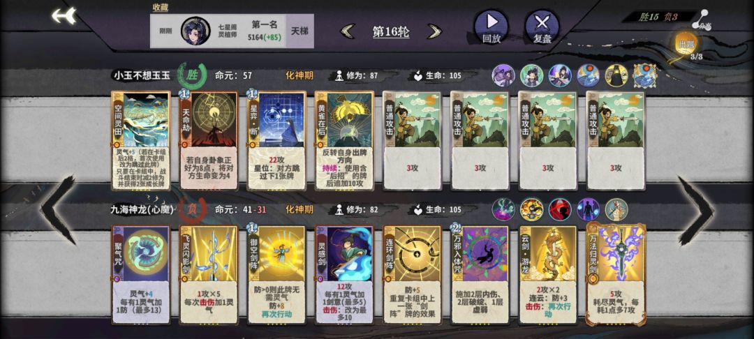 ps:话不多说,只有三点 一.仙命的选择 筑基:火刀 金丹:优先修为 无修拿灵气 剑韵都可以 元婴:优先修为 无修拿灵气 剑韵都可以 化神:优先级(副职兼修)其他随意 副职兼修的上限(两动130左右)爽的批爆好吗[表情_尬笑] 休养紫色心情看血量可自行选择(注意:11轮前基本后手,有弱体等对局牌尽量留住) 警告:雷劫需谨慎(新手不推荐)[表情_斜眼笑] 二.化神前递牌过度思路 01.练气小递(