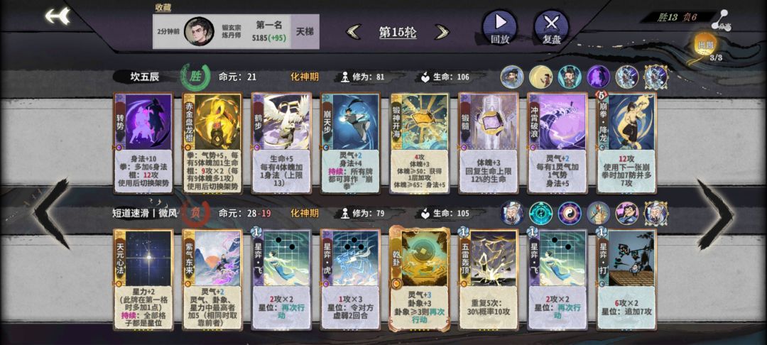 大家好,我是睡觉|绿巨人|安笙[表情_开心],本期从锻玄宗门派卡池的角度,给大家带来一期卡牌使用技巧的讲解[表情_开心],赛季即将进入尾声,希望各位体宗大能们上分顺利[表情_开心]。 练气期牌 崩拳·弹:这张牌很不起眼,但是其实数值非常的可观。当你过渡期无牌可用时,不妨留着这张牌,它本身数值就还不错,而且接任何其他的崩拳卡打工都不亏模哦。常见combo:弹-降龙-突 千斤坠:同样是很不起眼的卡,但
