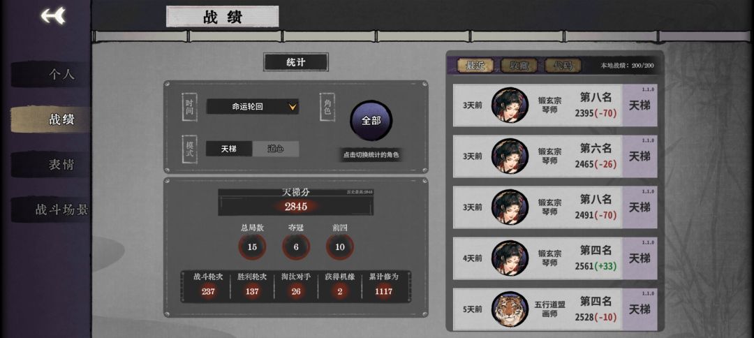 大家好!俺是来自哈基帮的杂酱面(没错,都来加入你牌最有潜力的哈基帮)。今天终于拿到了叶冥冥的六千分👏👏👏!一共四十把二十一把吃鸡,应该算是比较快的上分了[表情_开心]。来分享一下我的上分心得,可能在六千分以上没那么适用,但想拿“蟾光永夜”称号的道友们可以来看一看噢。 首先,选择大于努力。每局一开始的共鸣选择和副职选择基本就奠定了这一局的基调。我上分基本上只玩两个流派,琴修玄和丹百杀。选择的方法也很