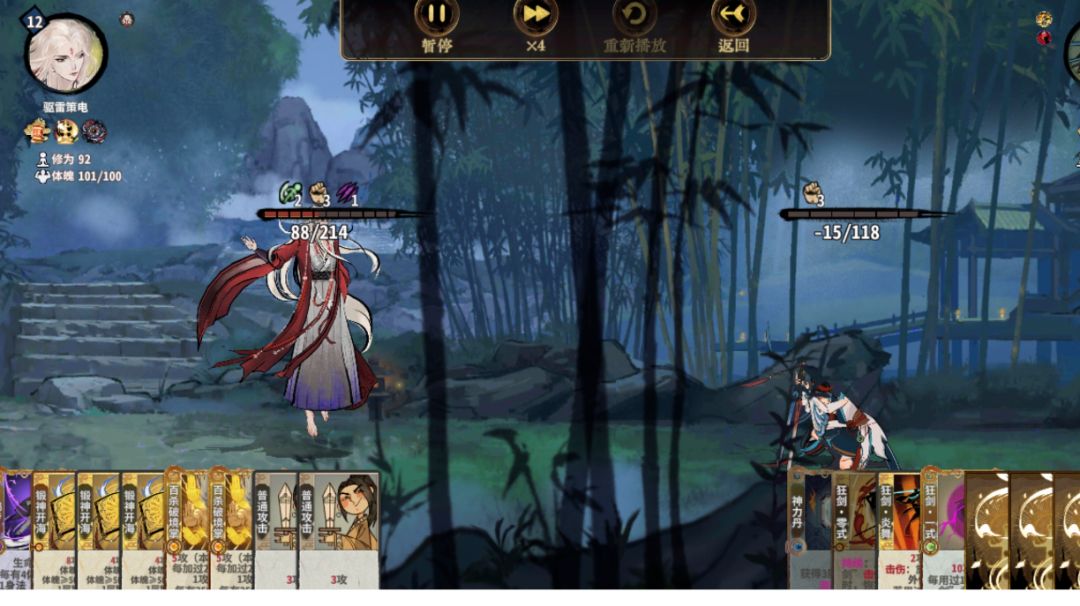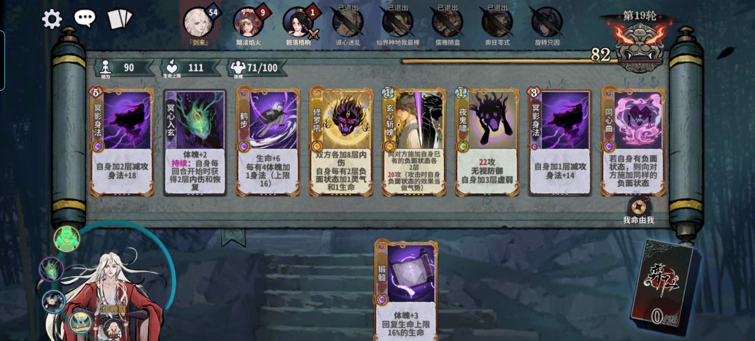 开局拿体魄牌过渡或者纯攻击牌保命元,最好一轮都不要d,现在主流都是丹师或者命理师,我们选琴师,选琴师有两个原因:一是前期慈念曲过渡,二是拿到我们这套阵容的关键牌 同心曲。过渡到元婴期大概在50命元左右,拿到自带天赋冥心入玄,夜鬼啸配合同心曲能打出高额持续爆发的同时有自保能力。加上身法牌(最好选冥影身法)快速过牌。灵气问题用琴师牌或者灵玄迷踪步解决。 补充:筑基天赋选再生之躯or拿牌or修为。金丹