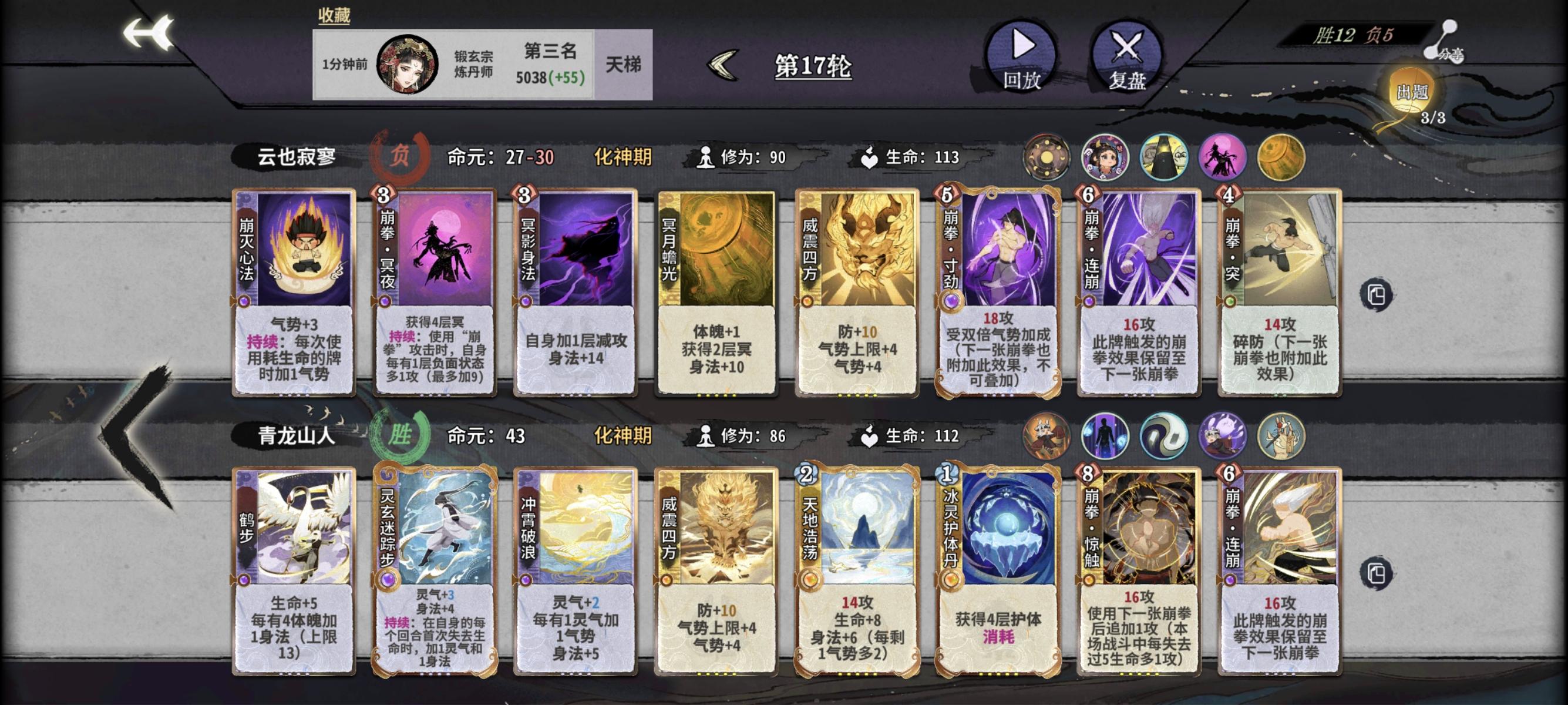 玩过炼丹师后尝试了下符咒师(图2),0作用这一块,然后买了个叫小布的锻体角色尝试打秘境3。图1是成型的内伤流,感觉非常强,由于靠负面效果输出,所以它放针对牌收益很高,而且因为身法机制,所以可以不用太在乎对位,最后打土灵更是让我叠爽了~要说缺点感觉有两点,一是中期纯靠内伤流伤害不够,二是鹤步的满收益是64体魄,这导致就算组件齐了也得等体魄上限。下一个尝试的应该就是加血量上限的五行+尝试其他副职