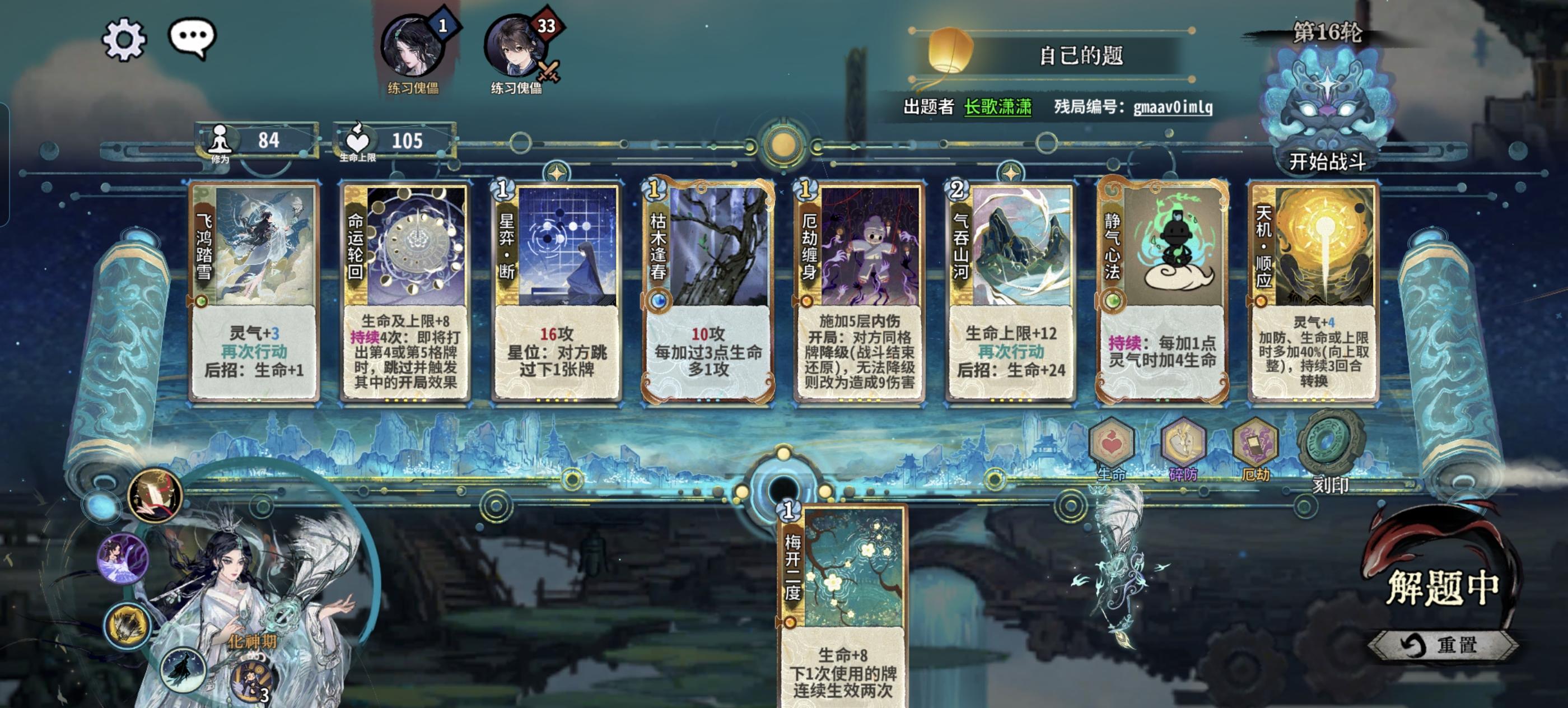 12轮拿几个破烂卡就能三动杀 鹤步闪击都可以一级身法溢出了 惊换成任意崩拳 一张化神卡加三张二级卡就能三动杀