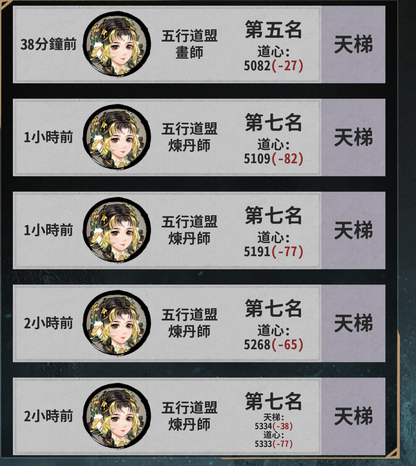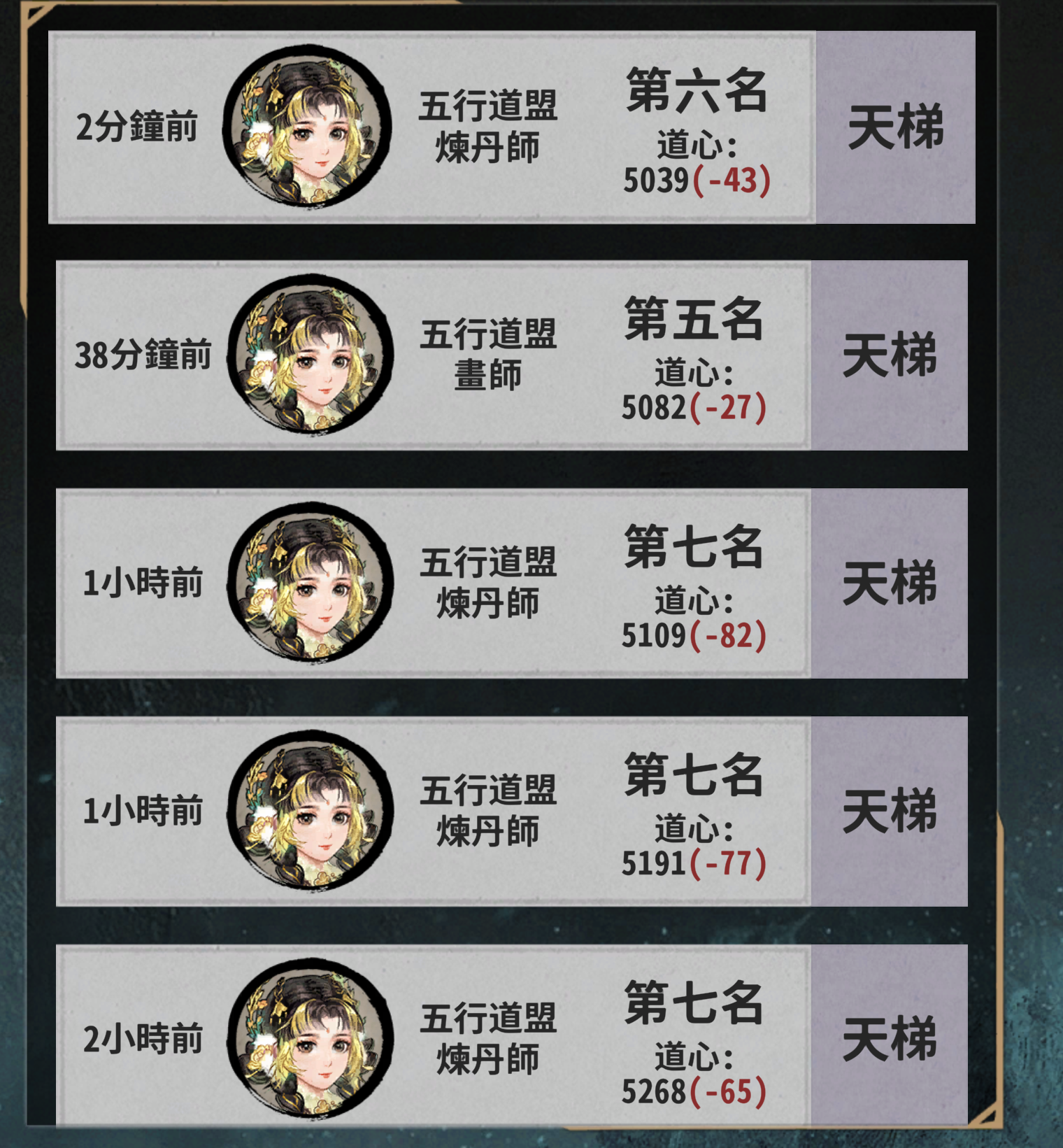 玩过炼丹师后尝试了下符咒师(图2),0作用这一块,然后买了个叫小布的锻体角色尝试打秘境3。图1是成型的内伤流,感觉非常强,由于靠负面效果输出,所以它放针对牌收益很高,而且因为身法机制,所以可以不用太在乎对位,最后打土灵更是让我叠爽了~要说缺点感觉有两点,一是中期纯靠内伤流伤害不够,二是鹤步的满收益是64体魄,这导致就算组件齐了也得等体魄上限。下一个尝试的应该就是加血量上限的五行+尝试其他副职