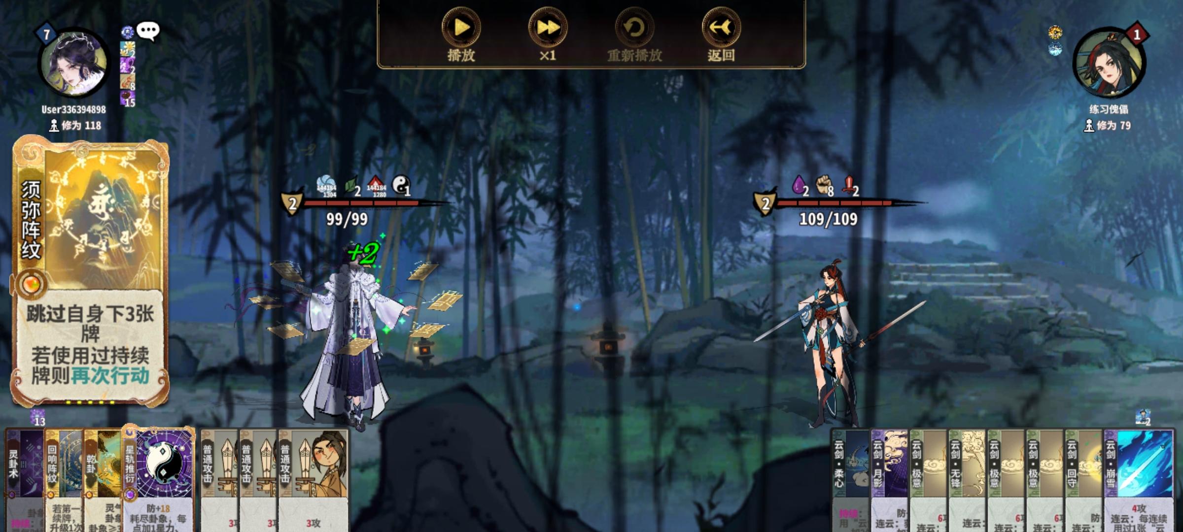 玩过炼丹师后尝试了下符咒师(图2),0作用这一块,然后买了个叫小布的锻体角色尝试打秘境3。图1是成型的内伤流,感觉非常强,由于靠负面效果输出,所以它放针对牌收益很高,而且因为身法机制,所以可以不用太在乎对位,最后打土灵更是让我叠爽了~要说缺点感觉有两点,一是中期纯靠内伤流伤害不够,二是鹤步的满收益是64体魄,这导致就算组件齐了也得等体魄上限。下一个尝试的应该就是加血量上限的五行+尝试其他副职