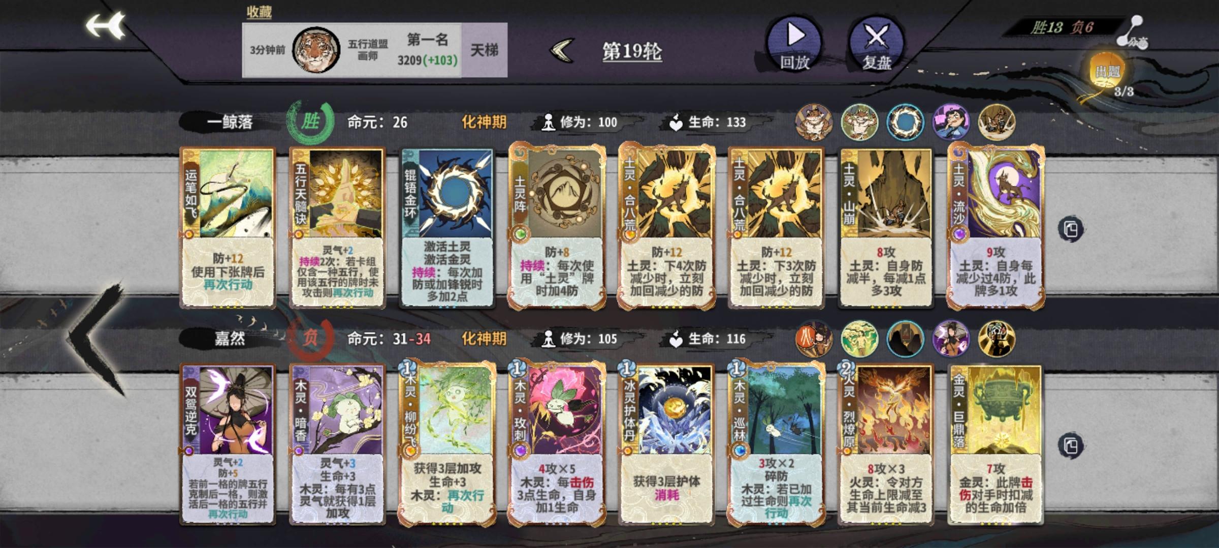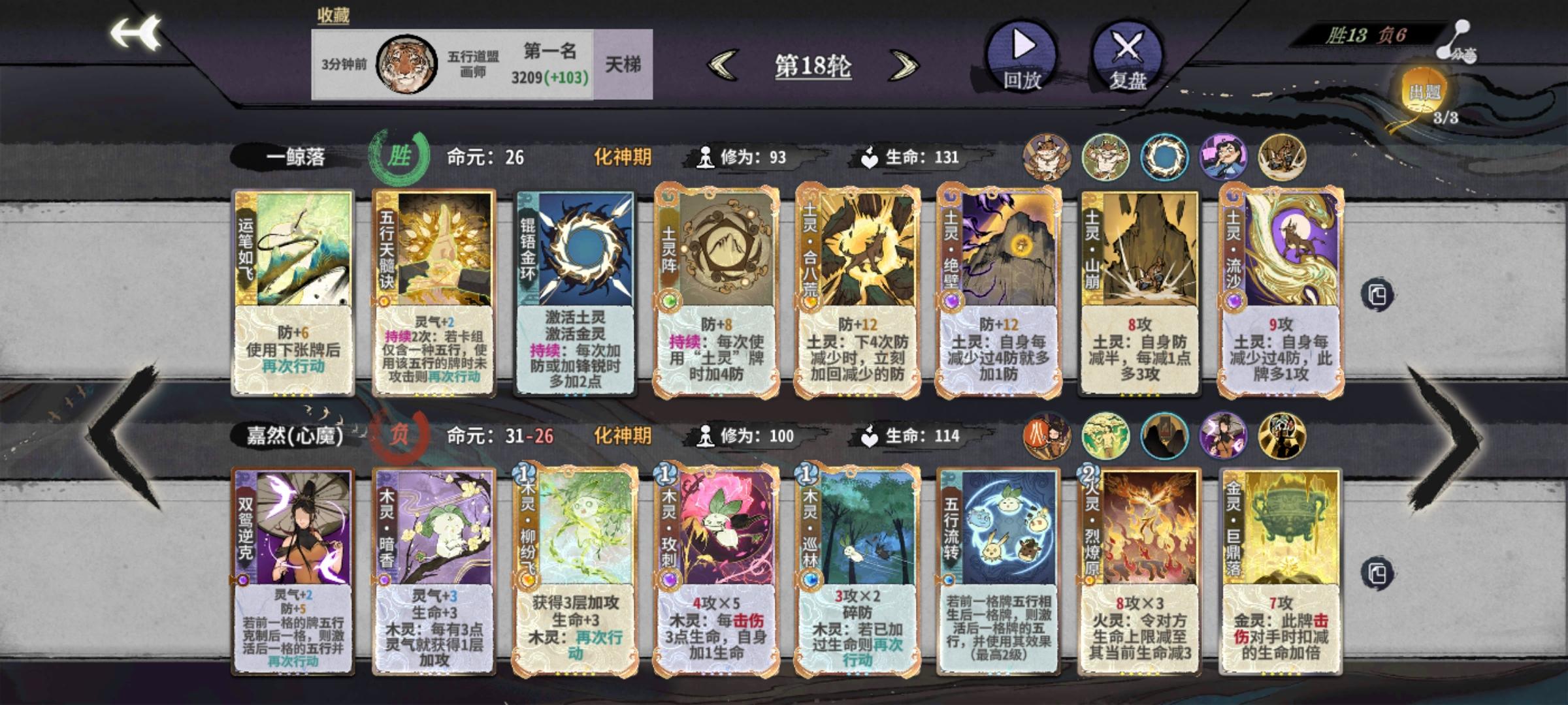炎雪为人诟病的点,缺D,仙命无法立刻提升战力,导致过度艰难。在追求稳定过度而言,画师大概是最好的选择,因为画的卡组对牌库的污染最少,主打就是多D,加强门派卡,手黑人士的救星[练气期]1~7轮:练气期,建议待到第6-7轮才上金丹1.主要是刷剑意卡组,因为这是化神期前的主要卡组2.建议把练笔刷6张或以上,早刷早享受,一步先,步步先,以免速7速8出局了,发现没有用完练笔3.最后注意科学换牌,因