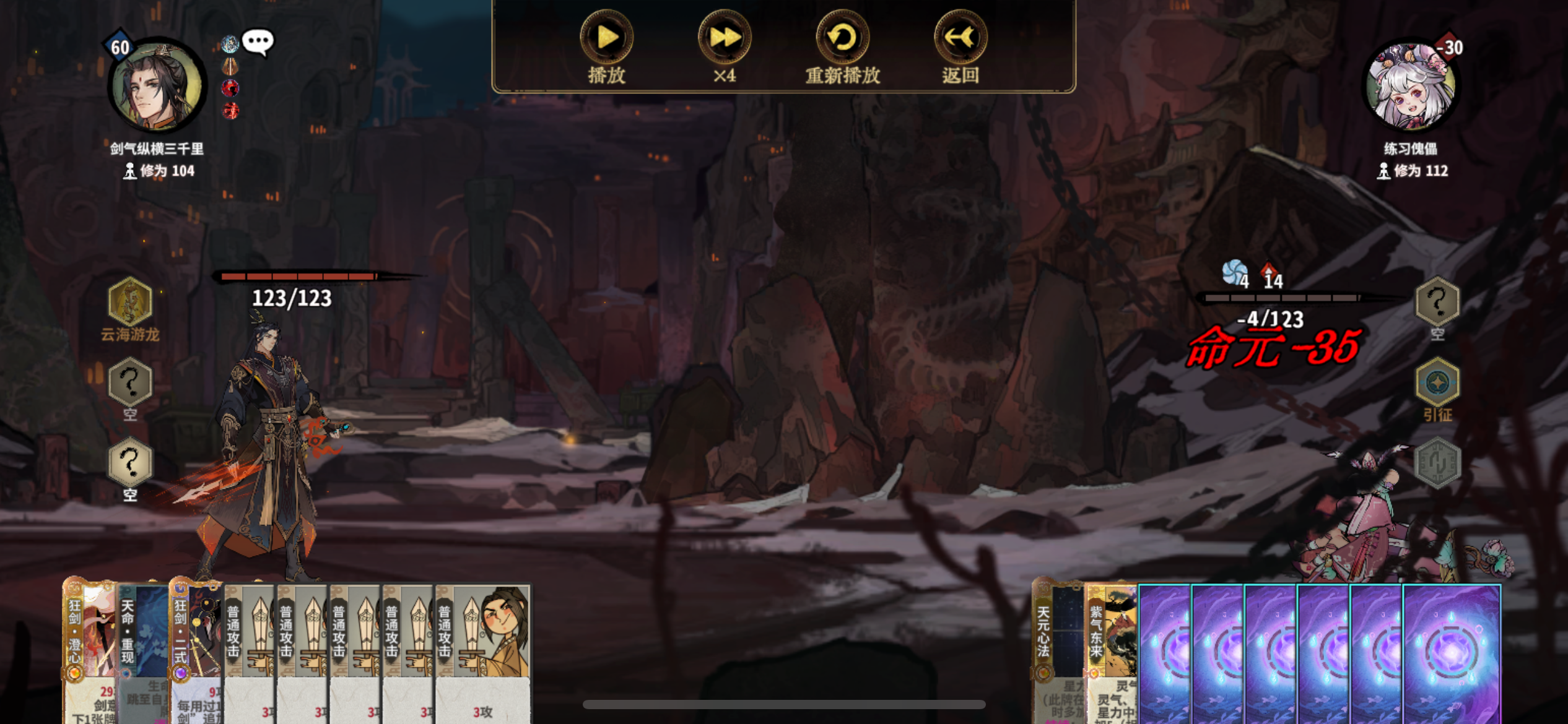 炎雪为人诟病的点,缺D,仙命无法立刻提升战力,导致过度艰难。在追求稳定过度而言,画师大概是最好的选择,因为画的卡组对牌库的污染最少,主打就是多D,加强门派卡,手黑人士的救星[练气期]1~7轮:练气期,建议待到第6-7轮才上金丹1.主要是刷剑意卡组,因为这是化神期前的主要卡组2.建议把练笔刷6张或以上,早刷早享受,一步先,步步先,以免速7速8出局了,发现没有用完练笔3.最后注意科学换牌,因