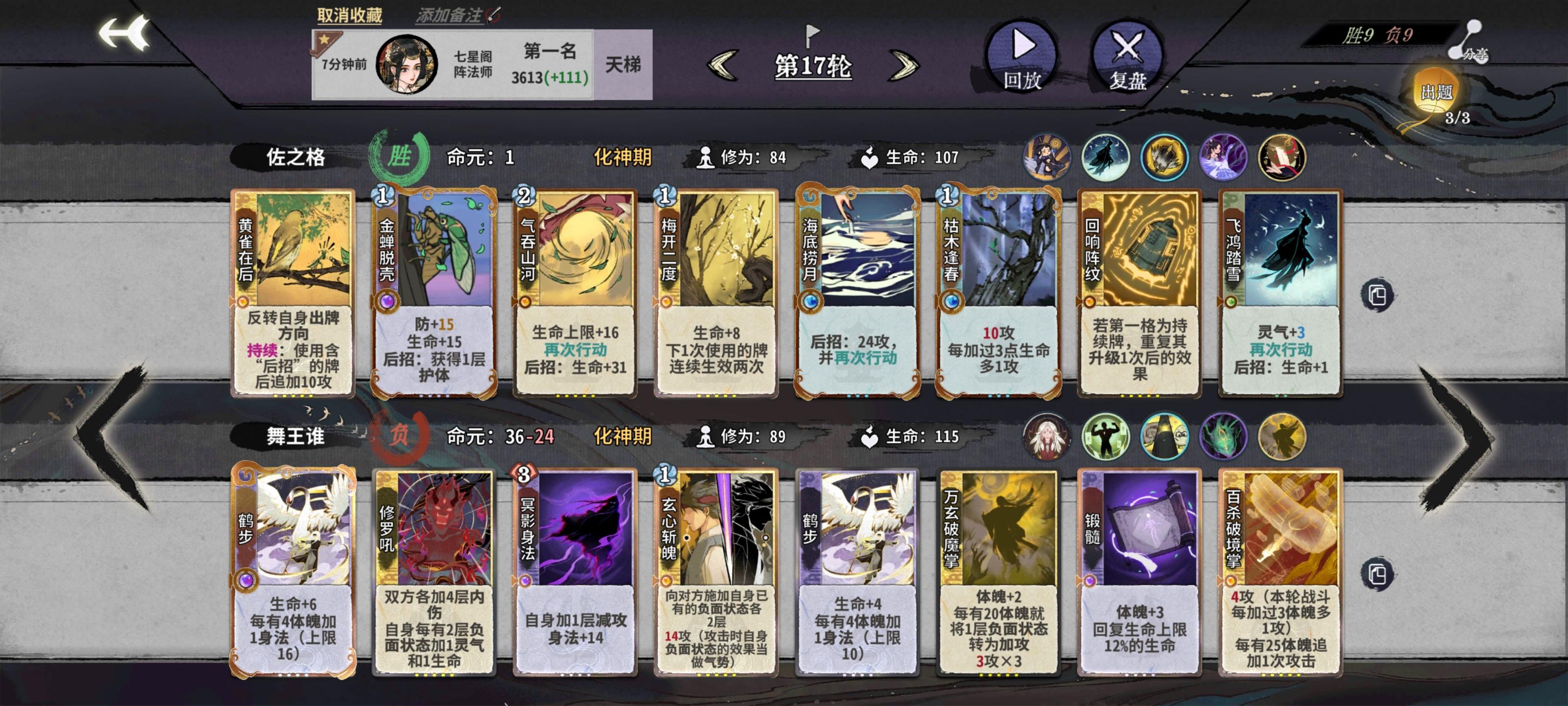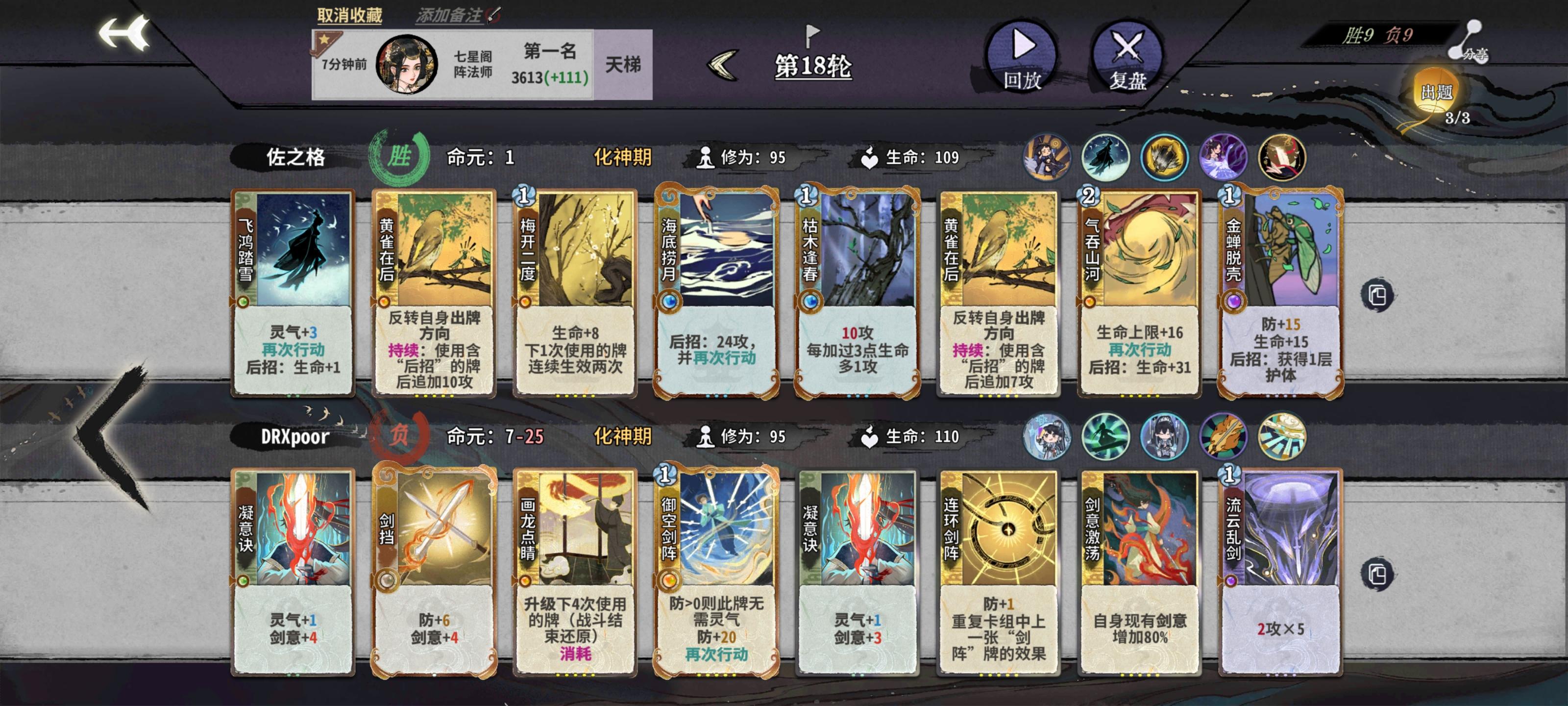 炎雪为人诟病的点,缺D,仙命无法立刻提升战力,导致过度艰难。在追求稳定过度而言,画师大概是最好的选择,因为画的卡组对牌库的污染最少,主打就是多D,加强门派卡,手黑人士的救星[练气期]1~7轮:练气期,建议待到第6-7轮才上金丹1.主要是刷剑意卡组,因为这是化神期前的主要卡组2.建议把练笔刷6张或以上,早刷早享受,一步先,步步先,以免速7速8出局了,发现没有用完练笔3.最后注意科学换牌,因