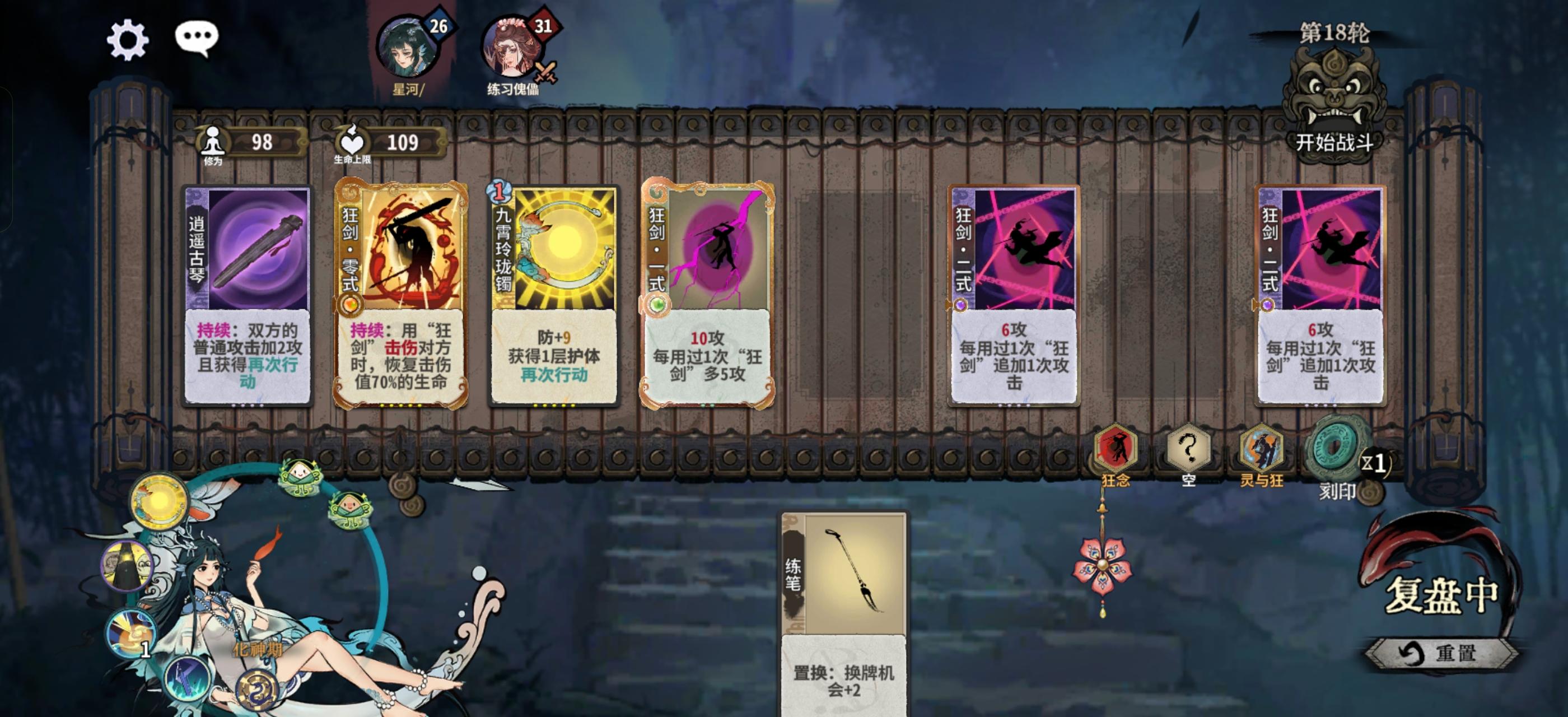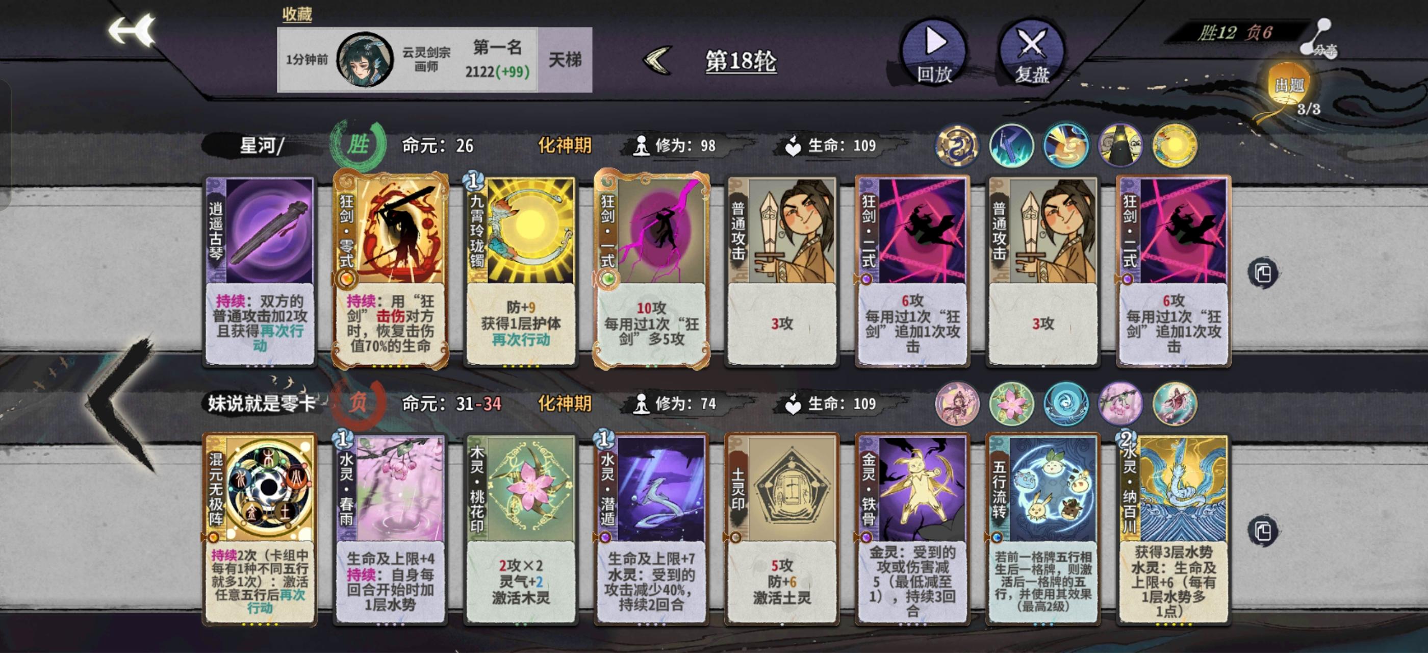 炎雪为人诟病的点,缺D,仙命无法立刻提升战力,导致过度艰难。在追求稳定过度而言,画师大概是最好的选择,因为画的卡组对牌库的污染最少,主打就是多D,加强门派卡,手黑人士的救星[练气期]1~7轮:练气期,建议待到第6-7轮才上金丹1.主要是刷剑意卡组,因为这是化神期前的主要卡组2.建议把练笔刷6张或以上,早刷早享受,一步先,步步先,以免速7速8出局了,发现没有用完练笔3.最后注意科学换牌,因