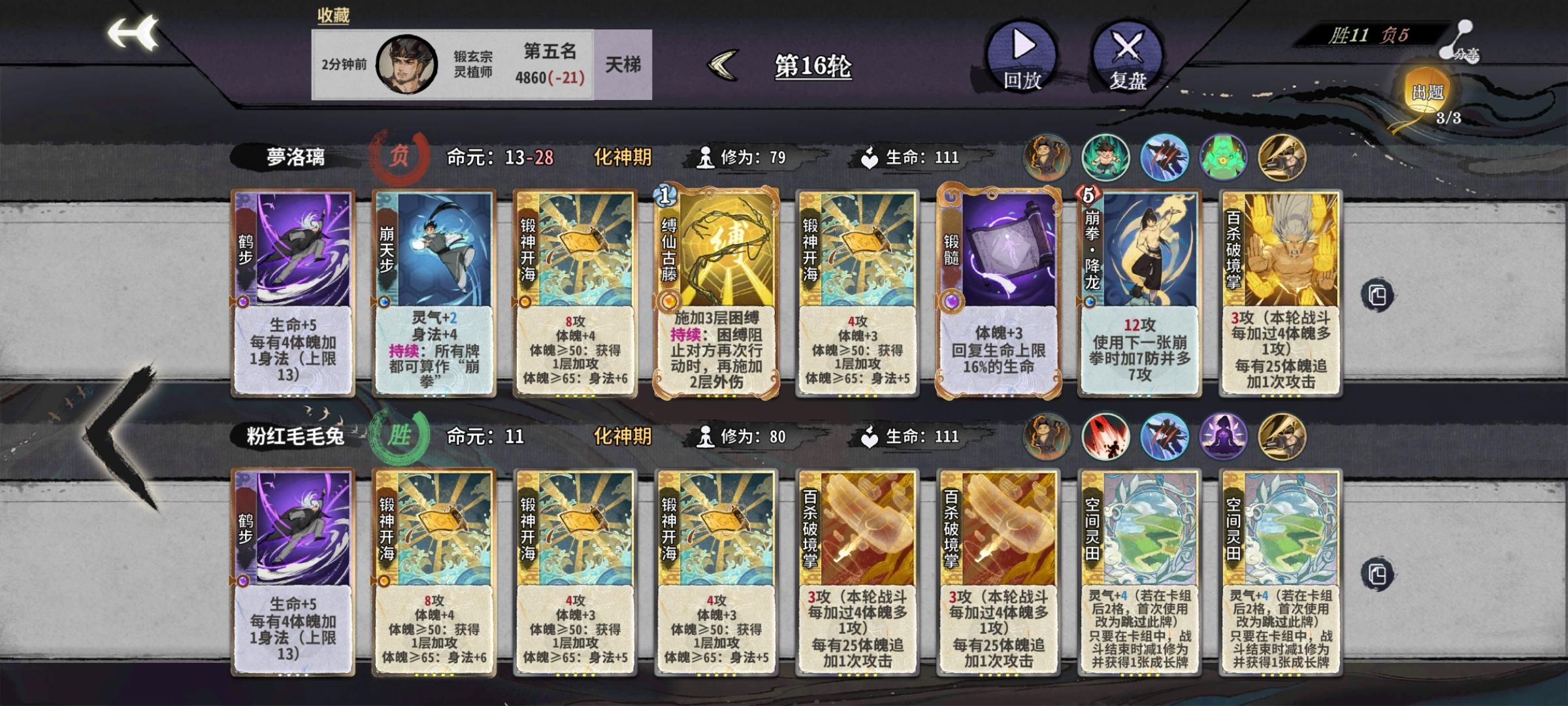 朋友们好呀,我是之前连掉400分的祁忘忧玩家,有印象的应该看过我发的帖子,我也道心六千了。之前风绪强的那一天我没赶上,削之后玩了一百多吧还在四千。上个赛季300多把道心六千。这个赛季是听闻噩耗匆匆忙忙赶回来玩,还是熟悉的感觉,玩一把输一把。在解题的过程中了解了各个对手的想法,改变了木火和对混元的执着,用天髓蹭分,什么都没有也要赖活着不放弃。分享一下之前只是当作兴趣但最后起到了关键作用的金水混