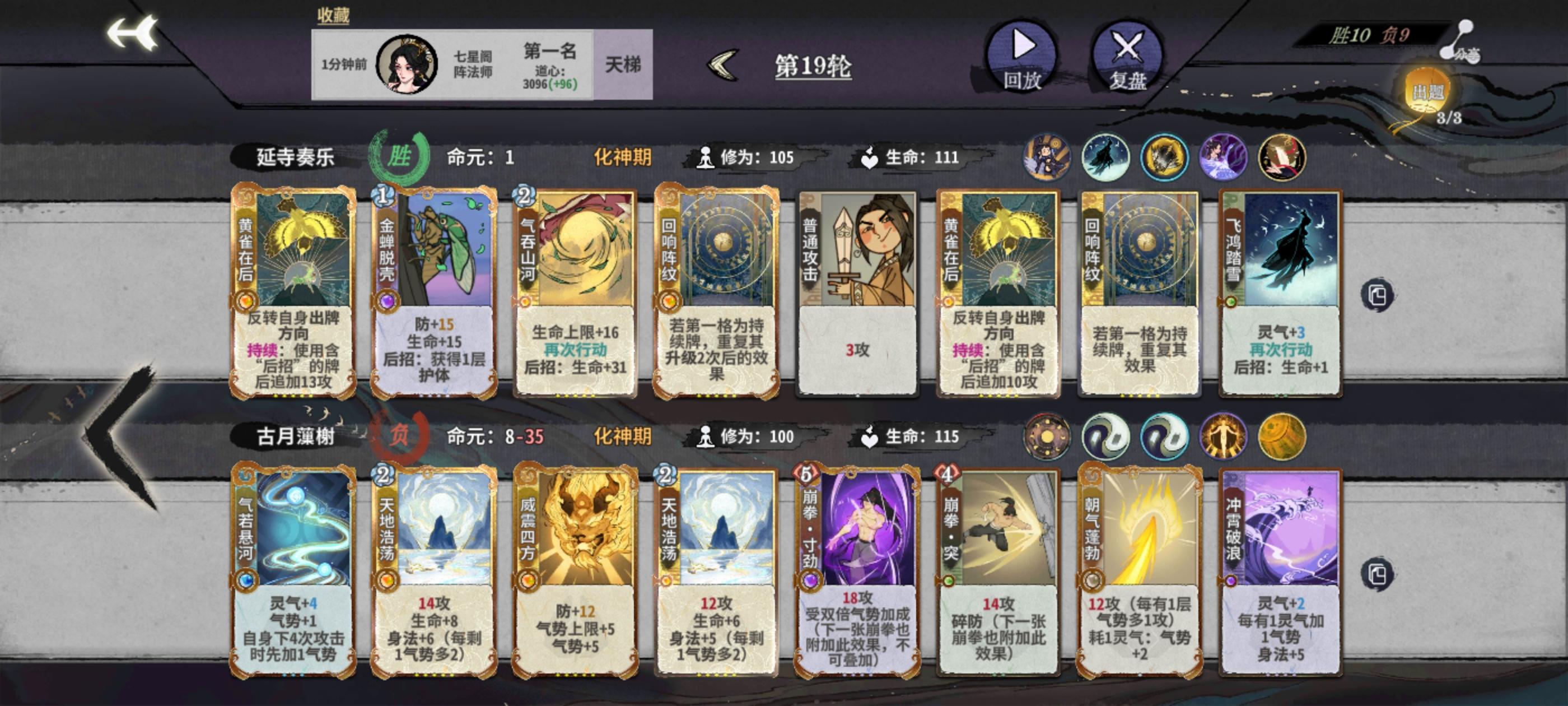 我突然冒出一个新点子,冰刀火刀合并成一个金丹仙命,必定击伤,每次攻击对方-1生命上限,自身+1生命上限和1防然后筑基加一个新仙命,获得一张冰火熔炉,不可上阵,炼化:生命上限+2,冰火熔炉在手牌中时速度+1崩雪,炎舞,冰火熔炉同时在手牌中时,此3张牌销毁,修为+2,获得1张新牌。1攻;此牌和下一张使用的牌同时视作云剑和狂剑;击伤:再动,+1/2/3云剑计数,1/2/3外伤这样就调和了,直接冰刀