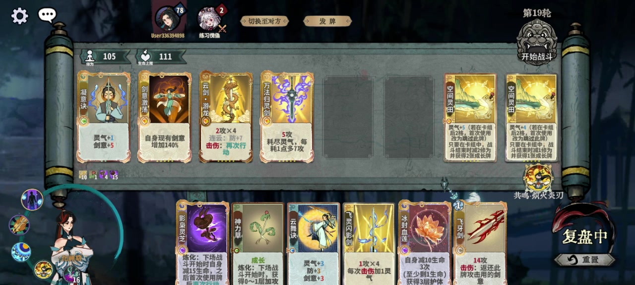 炎雪为人诟病的点,缺D,仙命无法立刻提升战力,导致过度艰难。在追求稳定过度而言,画师大概是最好的选择,因为画的卡组对牌库的污染最少,主打就是多D,加强门派卡,手黑人士的救星[练气期]1~7轮:练气期,建议待到第6-7轮才上金丹1.主要是刷剑意卡组,因为这是化神期前的主要卡组2.建议把练笔刷6张或以上,早刷早享受,一步先,步步先,以免速7速8出局了,发现没有用完练笔3.最后注意科学换牌,因