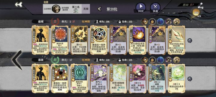 大家好,我是樱灵殿の无机化学 !uid:6390106ae69afc9c8defc071先贴战绩 当前环境,南宫燕子称霸(南宫已死),鸳只能分一杯羹。吃鸡率远不如前两位,但是前四率应该是当前最高得角色。秘籍代码 MJ33NM一、仙命&道韵选择 每把鸳都会随机先天五行,过渡来说先天火>木>金>土>水。元婴逆克必选,筑基金丹选修,存在一个特例,南宫多得情况且是先天土,可以考虑点激活和元灵来卡