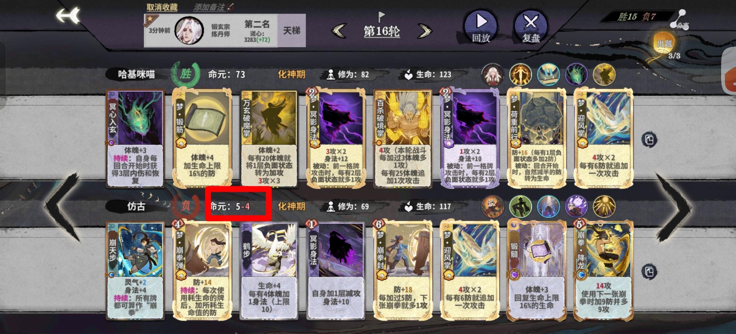 大家好我是新版本榜一南宫樱灵殿の懒惰虫UID:65b177b6f54766ac19c0a00f喜欢玩剑意爆发速杀的小伙伴们你们好我是丹南宫,我已50把内光速6200+分,你也来试试吧!前言由于本版本核心为梦牌,本攻略将给出金木水火土混元碎击和各种混搭的思路。攻略将分为金木水火土五个大板块,然后给出点评。攻略可能较长,请耐心观看。先给出南宫的所有成型卡牌,可能比较长不要怕,后面会进行逐一