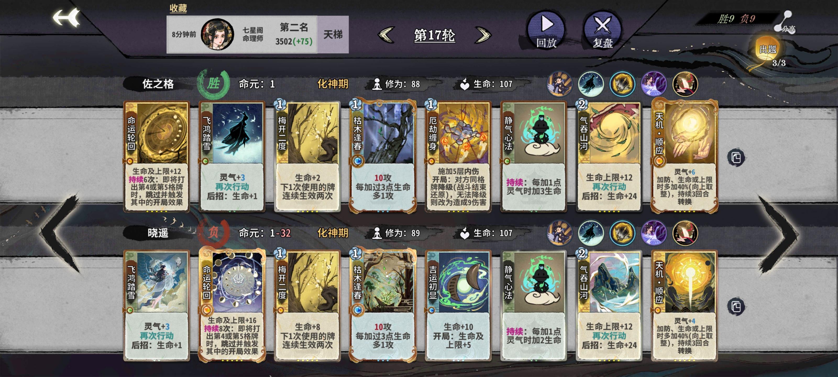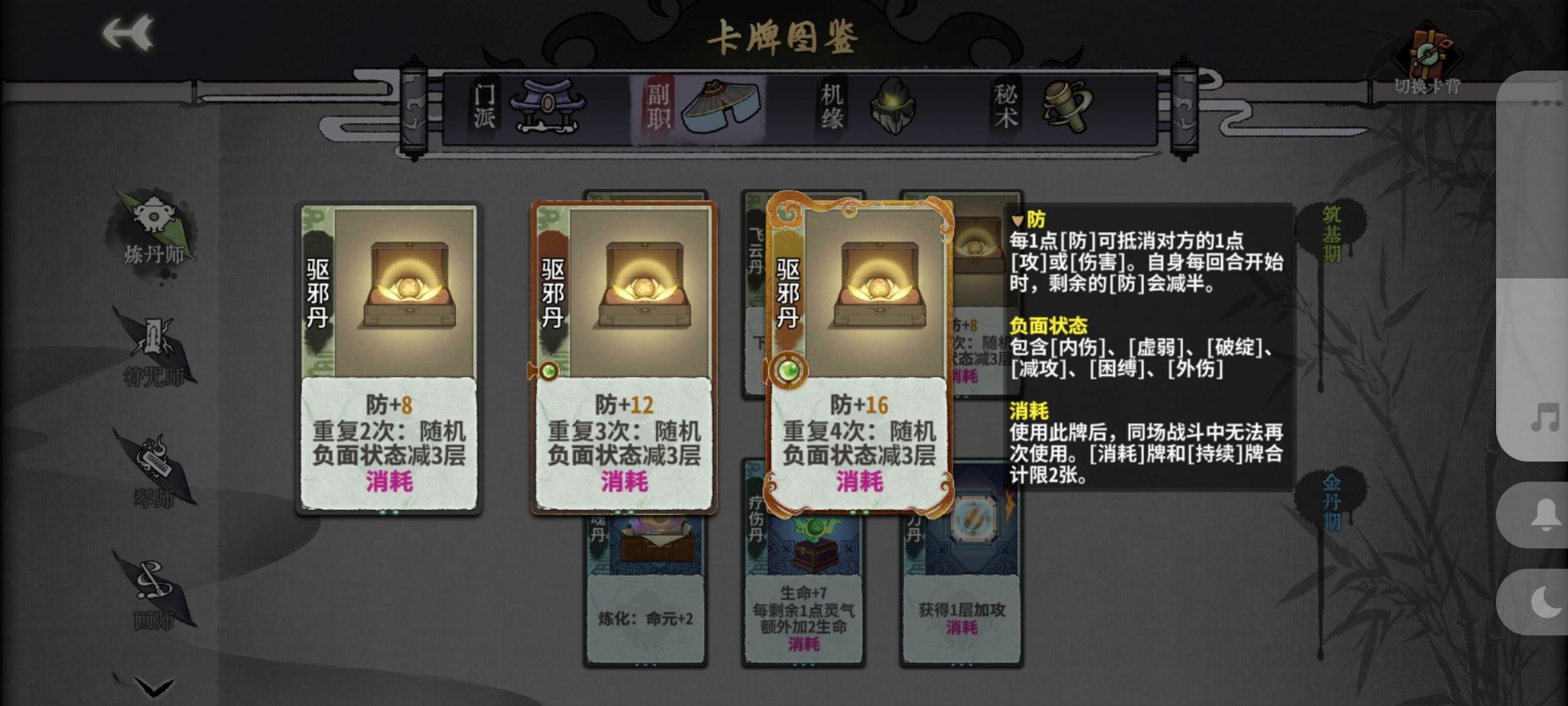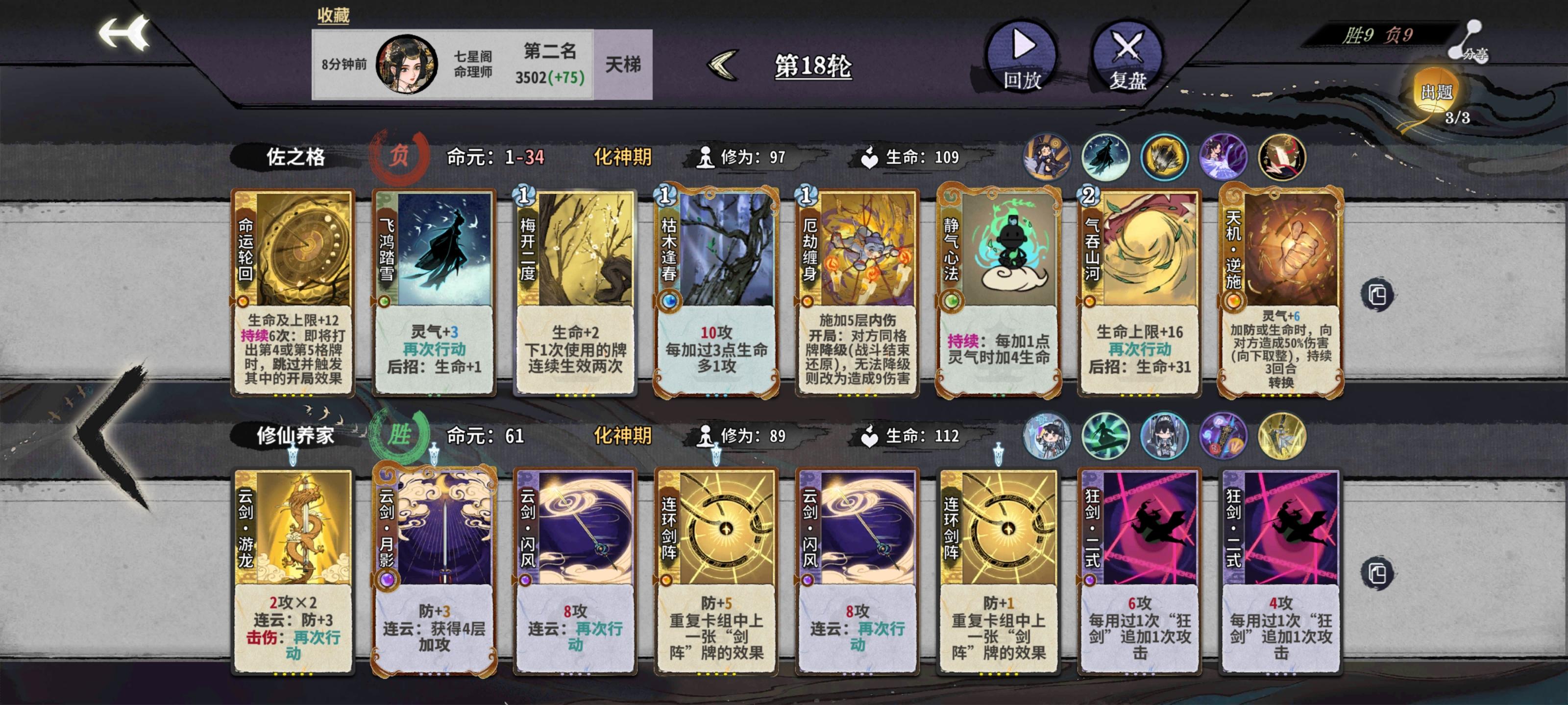 炎雪为人诟病的点,缺D,仙命无法立刻提升战力,导致过度艰难。在追求稳定过度而言,画师大概是最好的选择,因为画的卡组对牌库的污染最少,主打就是多D,加强门派卡,手黑人士的救星[练气期]1~7轮:练气期,建议待到第6-7轮才上金丹1.主要是刷剑意卡组,因为这是化神期前的主要卡组2.建议把练笔刷6张或以上,早刷早享受,一步先,步步先,以免速7速8出局了,发现没有用完练笔3.最后注意科学换牌,因