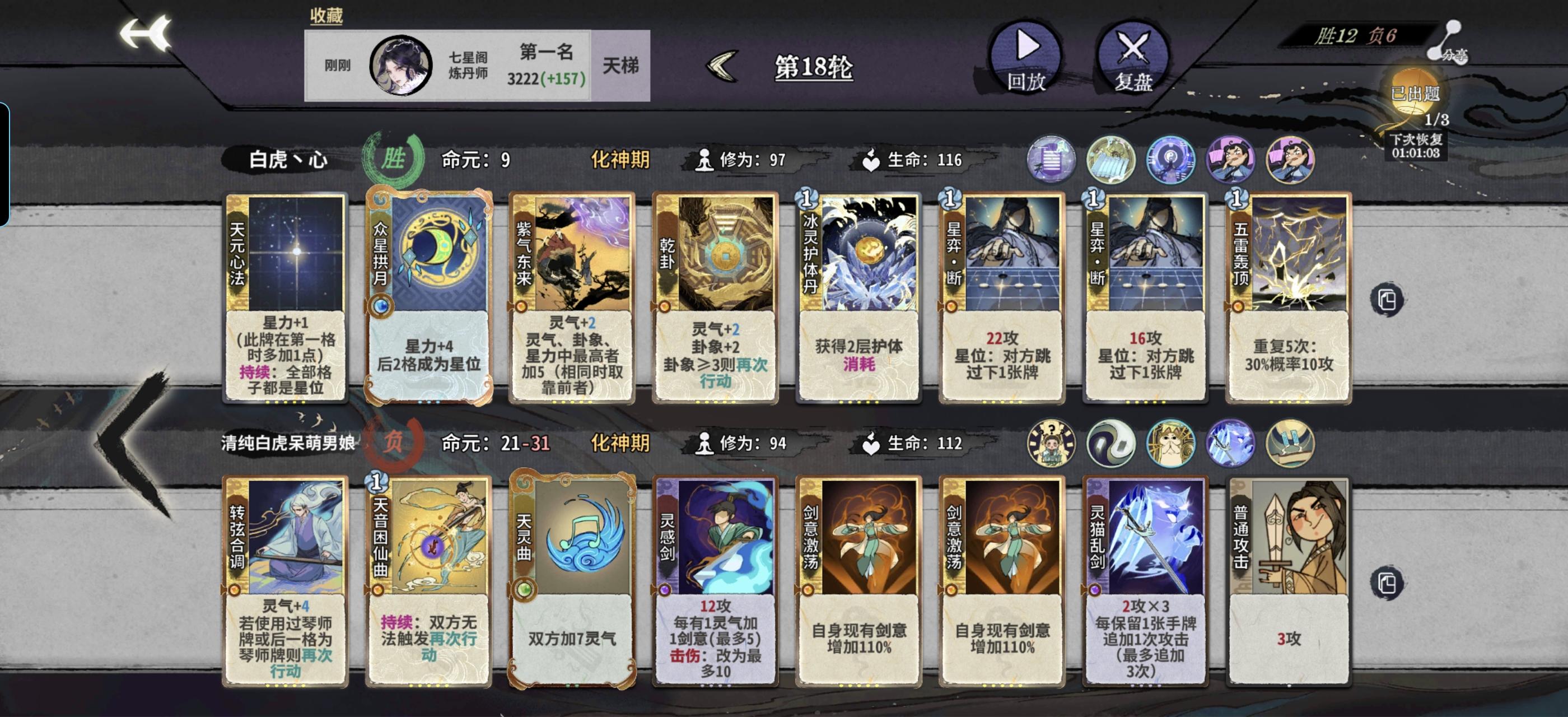复盘的时候试了一下,我发现这个林小月有四套摆法能赢我这么胡的风绪,最简单的赌断,灵猫后置,上万法的话用我试的摆法画龙放123刻印位置都能赢,阴的没边啊,有没有大佬能试出更多,战绩代码:gmac0c43ci