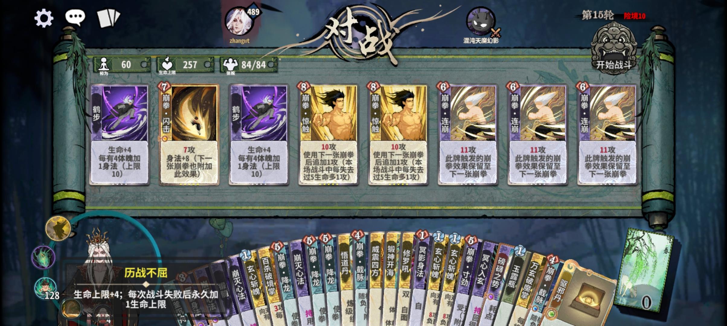 碰到很多次就剩我俩,玄修和崩拳17伦之前都打的过,之后干不过了#弈仙牌