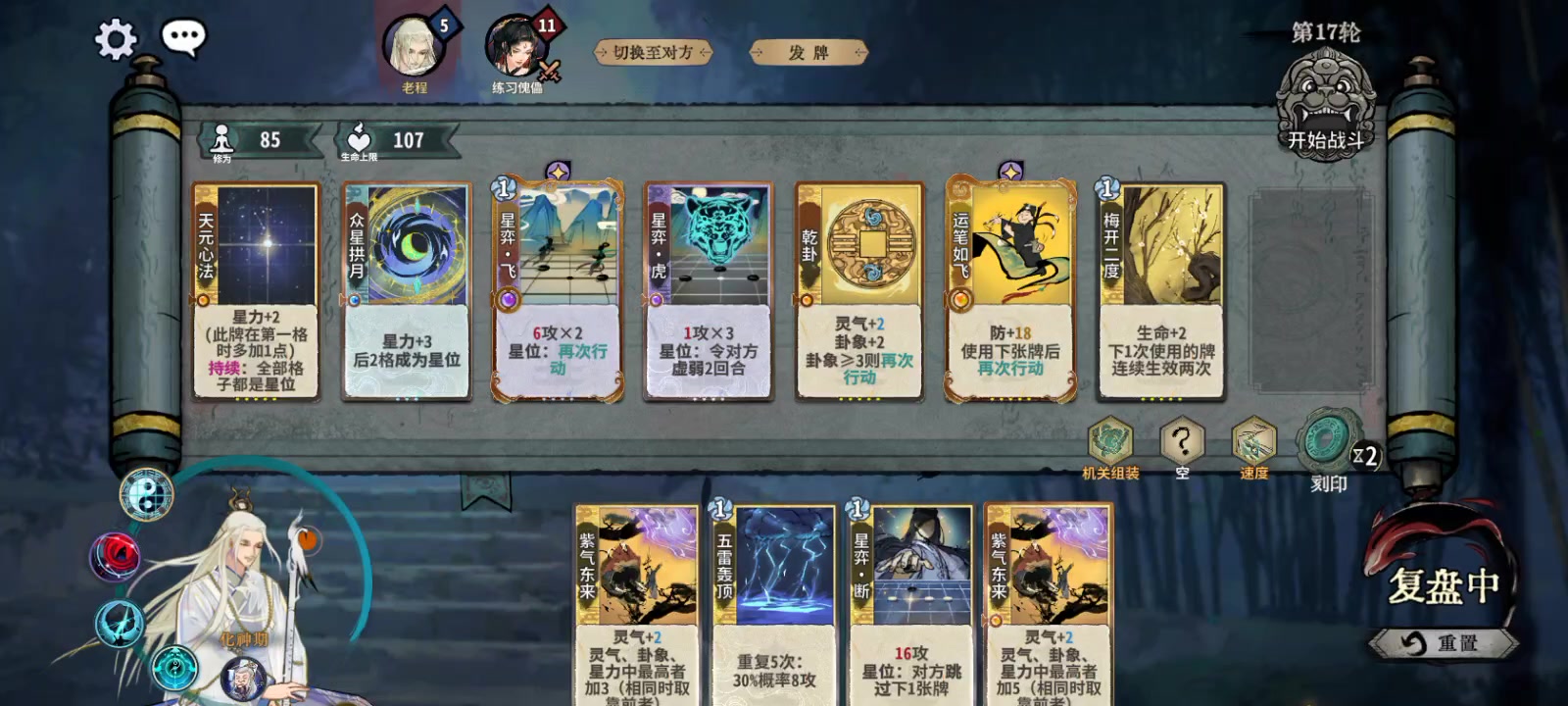 之前也有过几次狂剑零式突然就不给回血的时候,就是有零式和黎承云的仙命“融会贯通”以后,过完第一轮牌后就有时会出现。